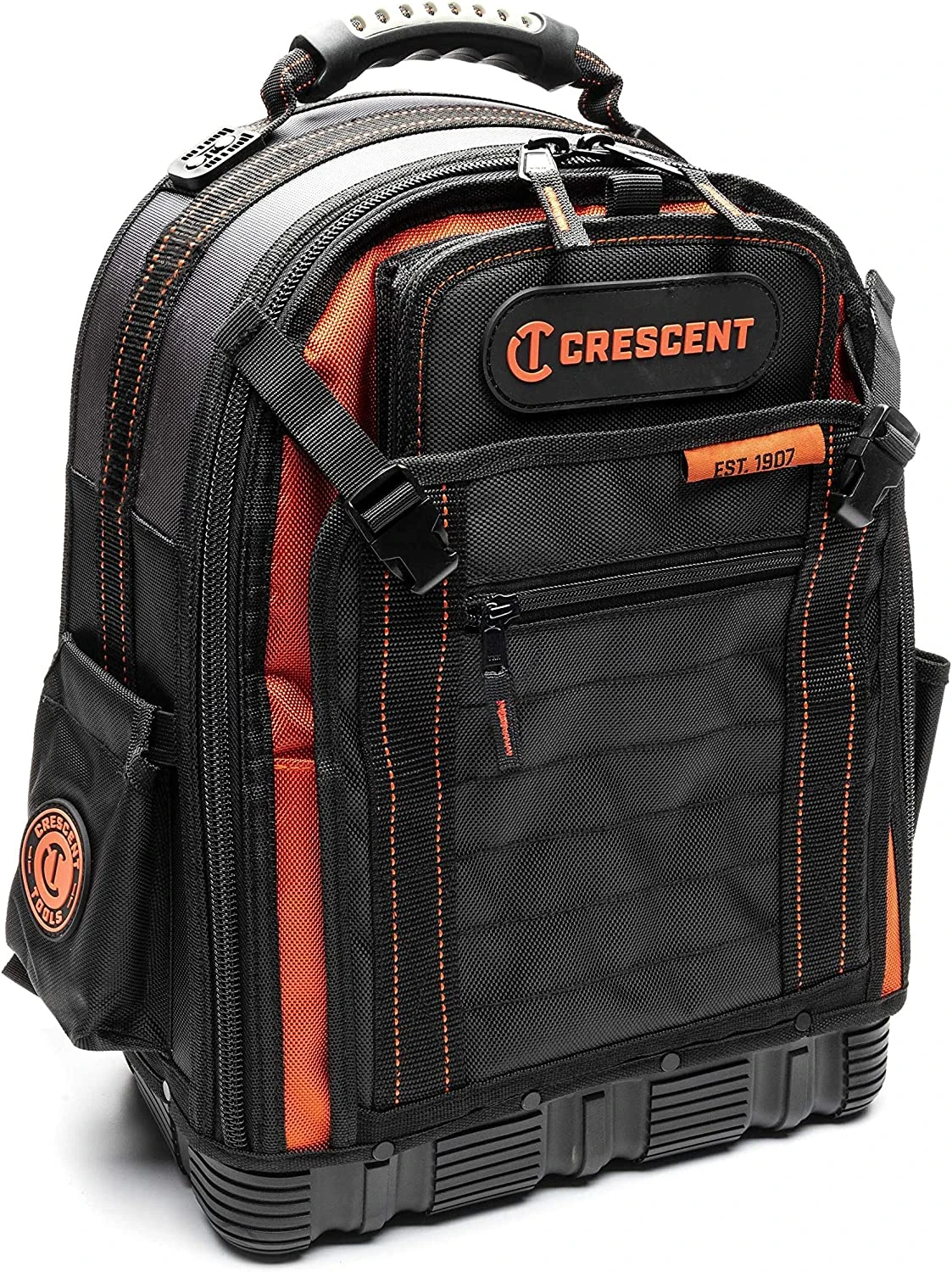 - Introducing the Crescent tradesman backpack. This bag features a hard polypropylene base that provides the durability you need to keep your tools safe and dry. Every zipper on this bag comes with a 3-year guarantee.