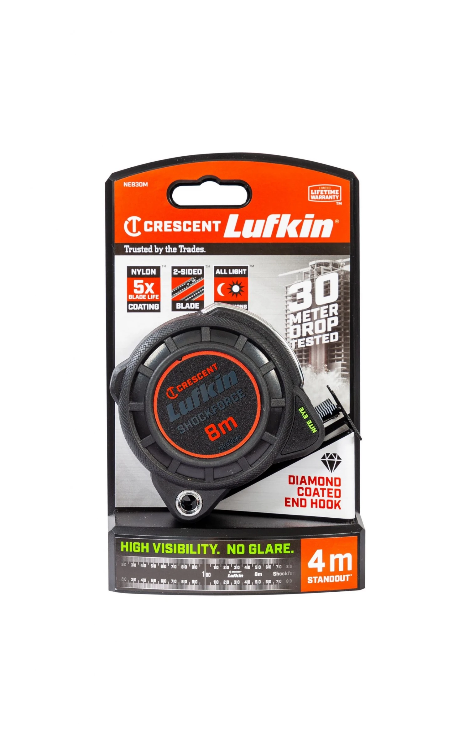 - 2x CRESCENT Lufkin NE830M Tape Measure 8m x 30mm Shockforce Nite Eye