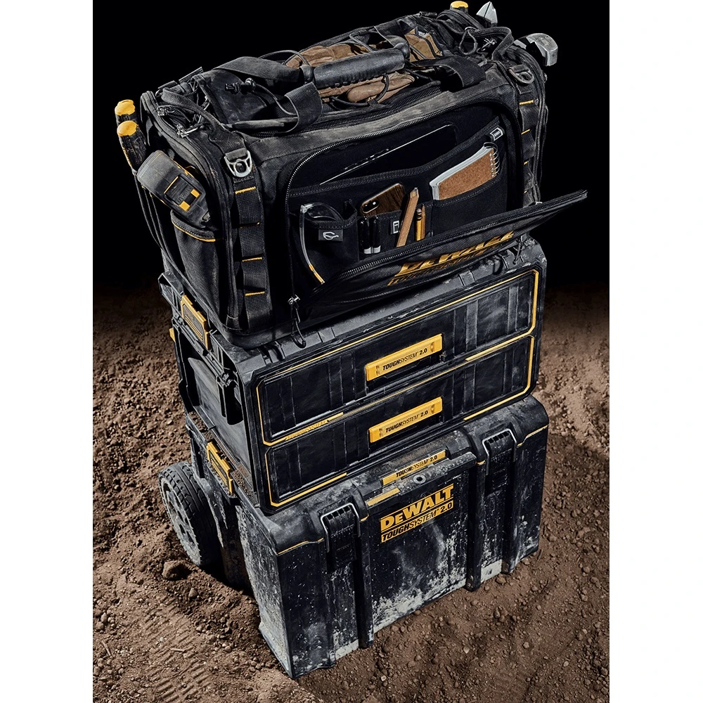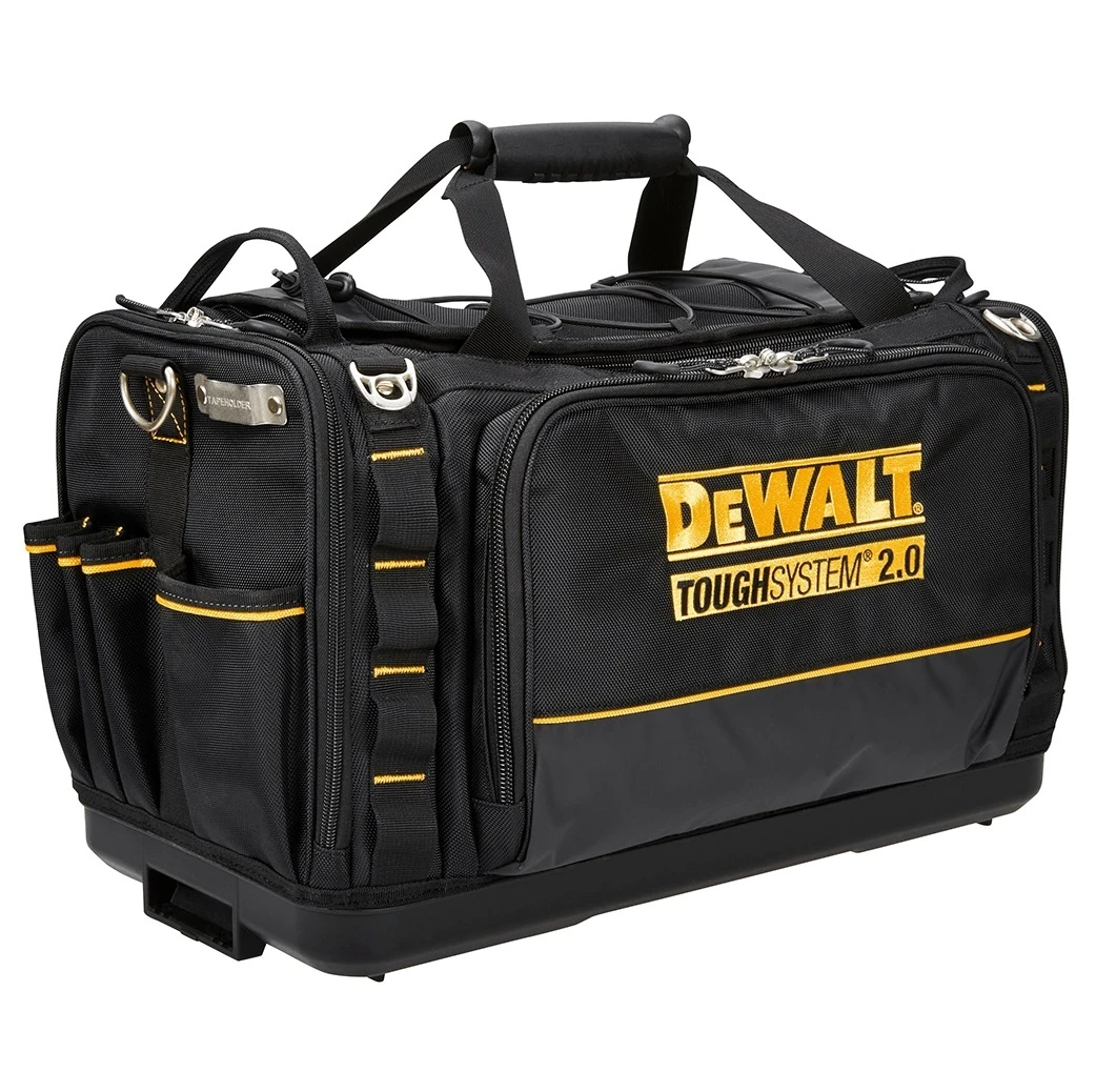 - The DeWALT Toughsystem 2.0 Duffle Tool Bag is made to easier and comfortable to carry thanks to its ergonomic handle and padded shoulder strap. With over 50 pockets and made from strong water and dirt repellent tarpaulin, you can take this tool bag almost anywhere