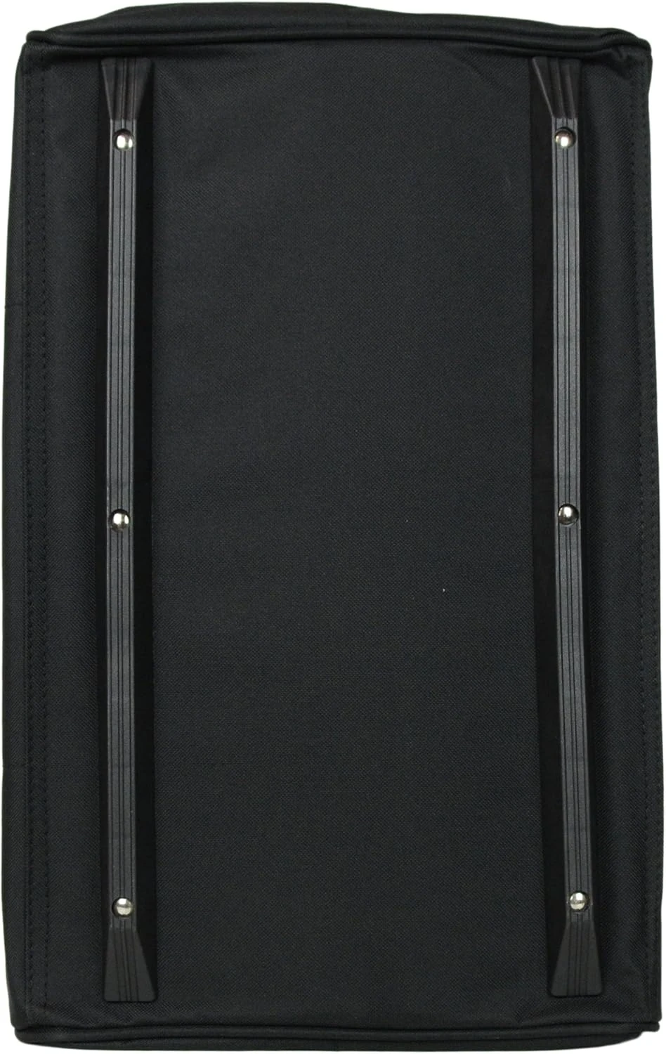 - Durable, heavy-duty water-resistant fabric. Reinforced zipper. Dual padded carry handles. Extra internal and external compartments. Sturdy base with protective runner bars Dimensions: (H) 35cm x (W) 60cm x (D) 33cm