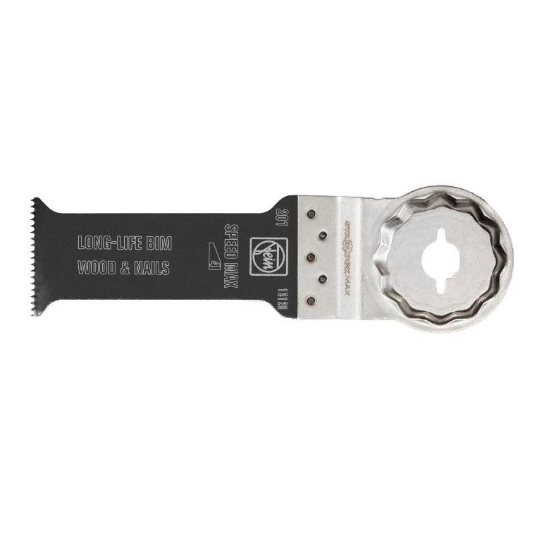 E-Cut long-life bimetal saw blade with set wood teeth for all wood, plasterboard and plastic materials. Outstanding tool life, high cutting quality and speed. Extremely robust, not affected by nails (up to diameter of approx. 4 mm) in wood, masonry etc. Long, wide shape for large plunge depths and effective working. With waist for optimum cutting speed and good swarf removal.