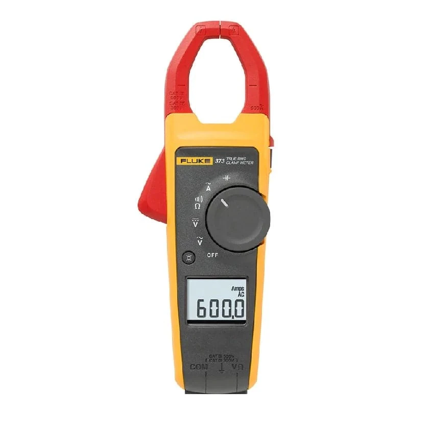 - Fluke 373 True-RMS AC Clamp Meter is a great choice for AC-only current measurement situations. Featuring True RMS AC voltage and current measurements you can measure AC current to 600 A and AC voltage to 600V. The 373 also measures DC voltage to 600 V and resistance to 6000 Ω.