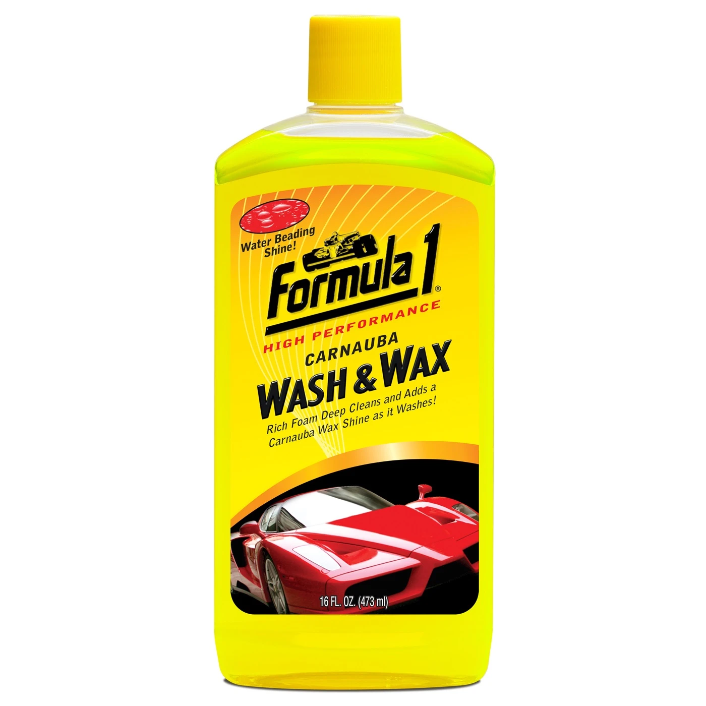 - Formula 1 Carnauba Wash & Wax creates a rich foam that cleans and adds premium Carnauba Wax for a brilliant shine. Best practice is to wash your car starting with the roof and working your way down the sides. We recommend washing with the Formula 1 Super Mitt to prevent scratching. To add an extra coat of Formula 1 Wash & Wax, simply fill a new bucket with product, pour over the car and rinse. To dry, we recommend the Formula 1 Super Dry microfiber drying towel
