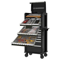 - GEARWRENCH Tool Storage products are trusted by professionals for their outstanding durability and precision. Engineered to meet the rigorous demands of professionals, our products are designed for maximum storage efficiency, ensuring your tools are neatly organised and easily accessible even in the harshest work environments. Our chests, trolleys, and cabinets are designed with durability, functionality, and ease of use in mind. Featuring reinforced frames, dual gas struts for controlled lid closure, secure trigger locks on all drawers, swivel caster wheels for mobility, and barrel-style locks for added security. GEARWRENCH tool storage solutions deliver durability, peace of mind, and convenience – Speed, Strength, Access