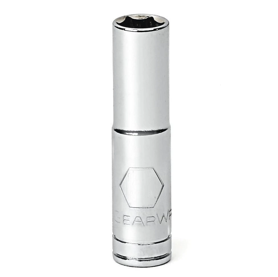 - GEARWRENCH 1/4″ drive sockets are manufactured from alloy steel for maximum durability and strength. Our off corner loading design reduces fastener rounding and the chamfered opening help guide the socket on to fasteners. Our sockets feature a double line (SAE) and knurled (metric) ring help easily identify standard and metric sockets