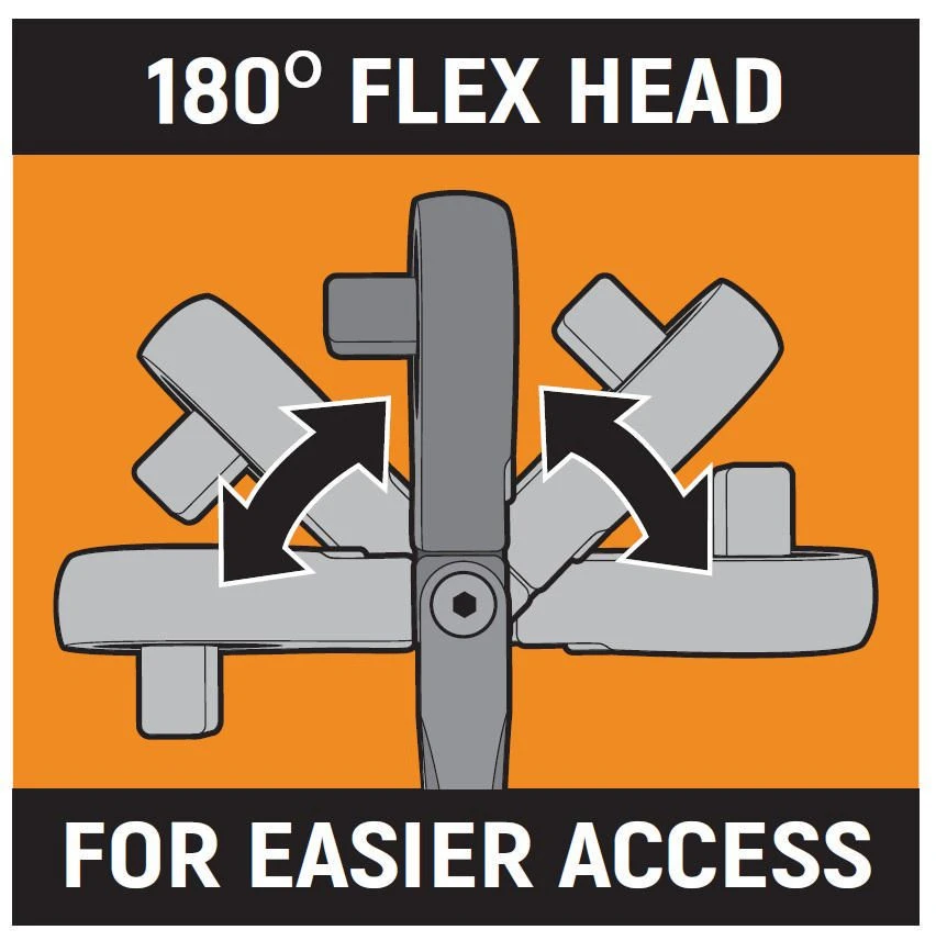 - Locking flex-head with 9 locked positions and unlocked option for adjustable access angle