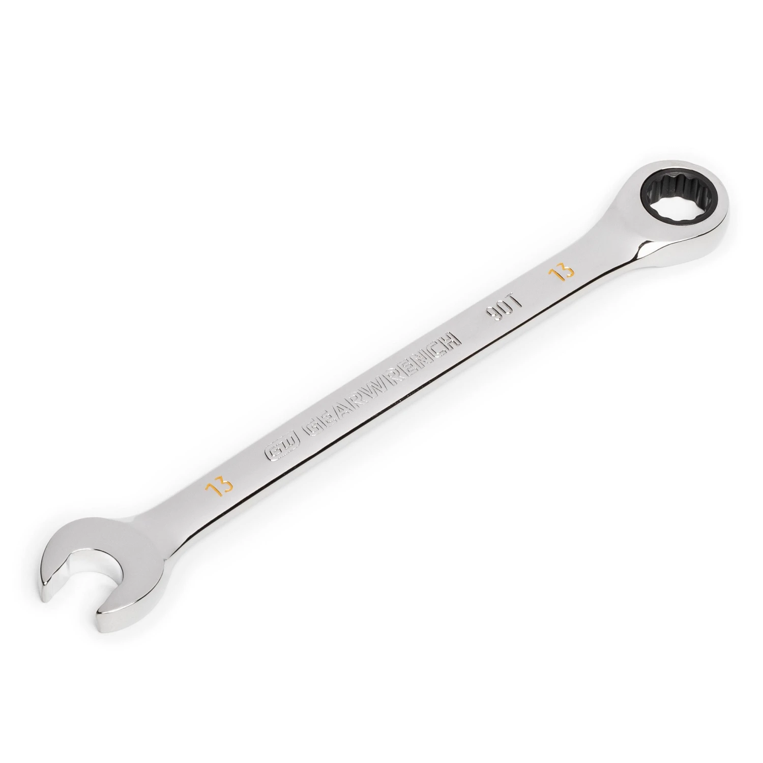 - 90-tooth ratcheting box end delivers a 4° swing arc to turn a fastener in tight spaces