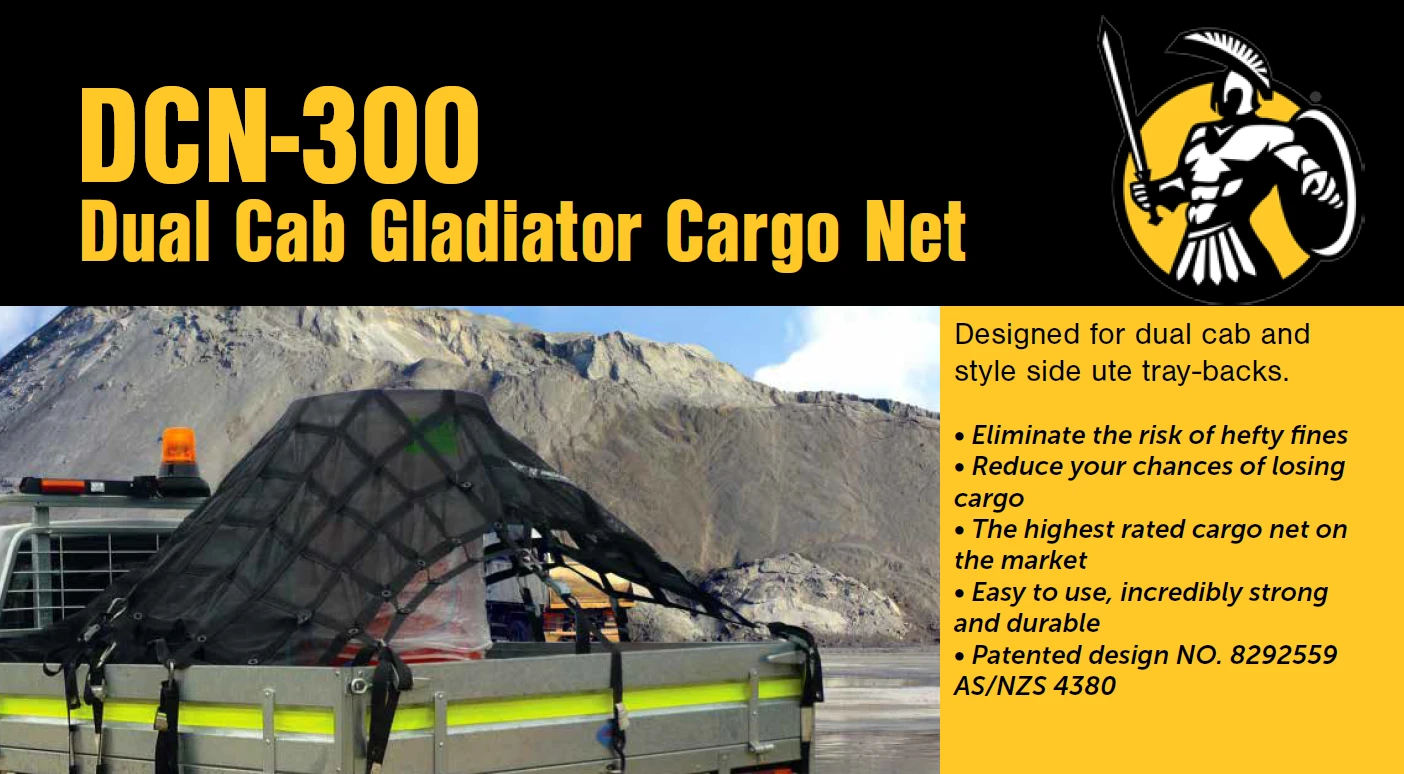- Eliminate the risk of a hefty fine and reduce your chances of losing cargo by keeping your loads covered and secured with the Gladiator Cargo Net. Used by large and small fleets all across the country it is the highest rated cargo net on the market. It has earned this by being easy to use, incredibly strong and durable