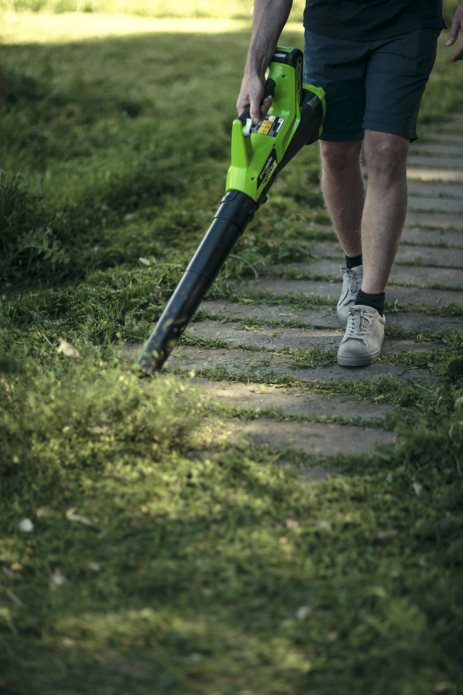 - This Greenworks 40v Li-Ion powered Garden Blower features an axial fan to deliver higher wind velocity and is controlled by a variable speed trigger system