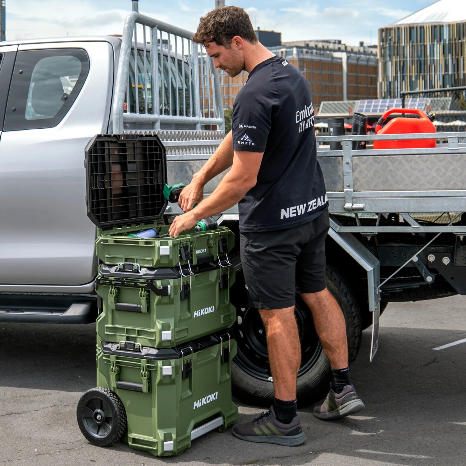 - Featuring a dedicated inner tray for efficient storage of chargers, batteries, and essentials, it also boasts a convenient hooking plate for external tool attachment, ensuring immediate access. With stack latches on both sides, secure stacking is guaranteed. Plus, the IP65 rating provides reliable protection against dust and water ingress. Elevate your tool organization with this versatile and durable Large Tool Box, designed to withstand various job site challenges