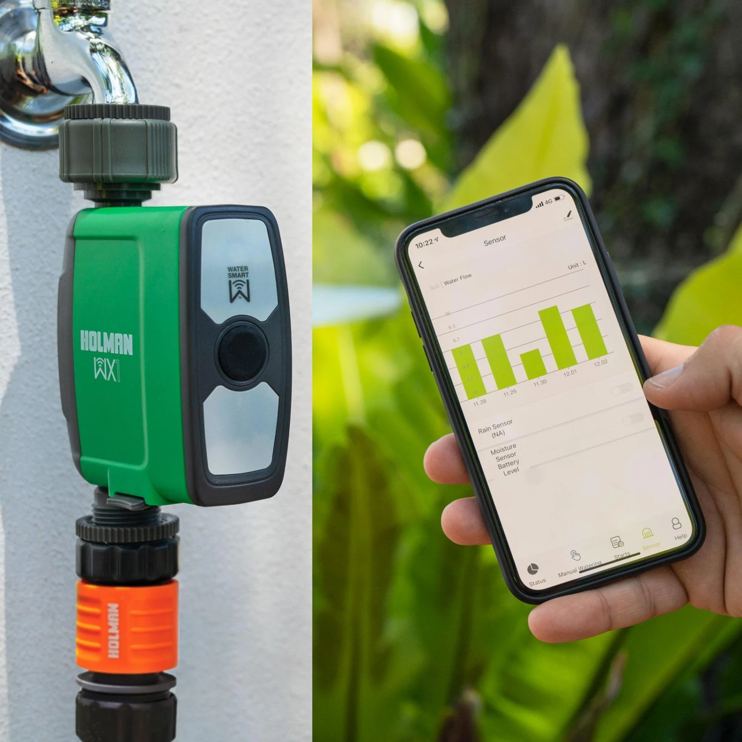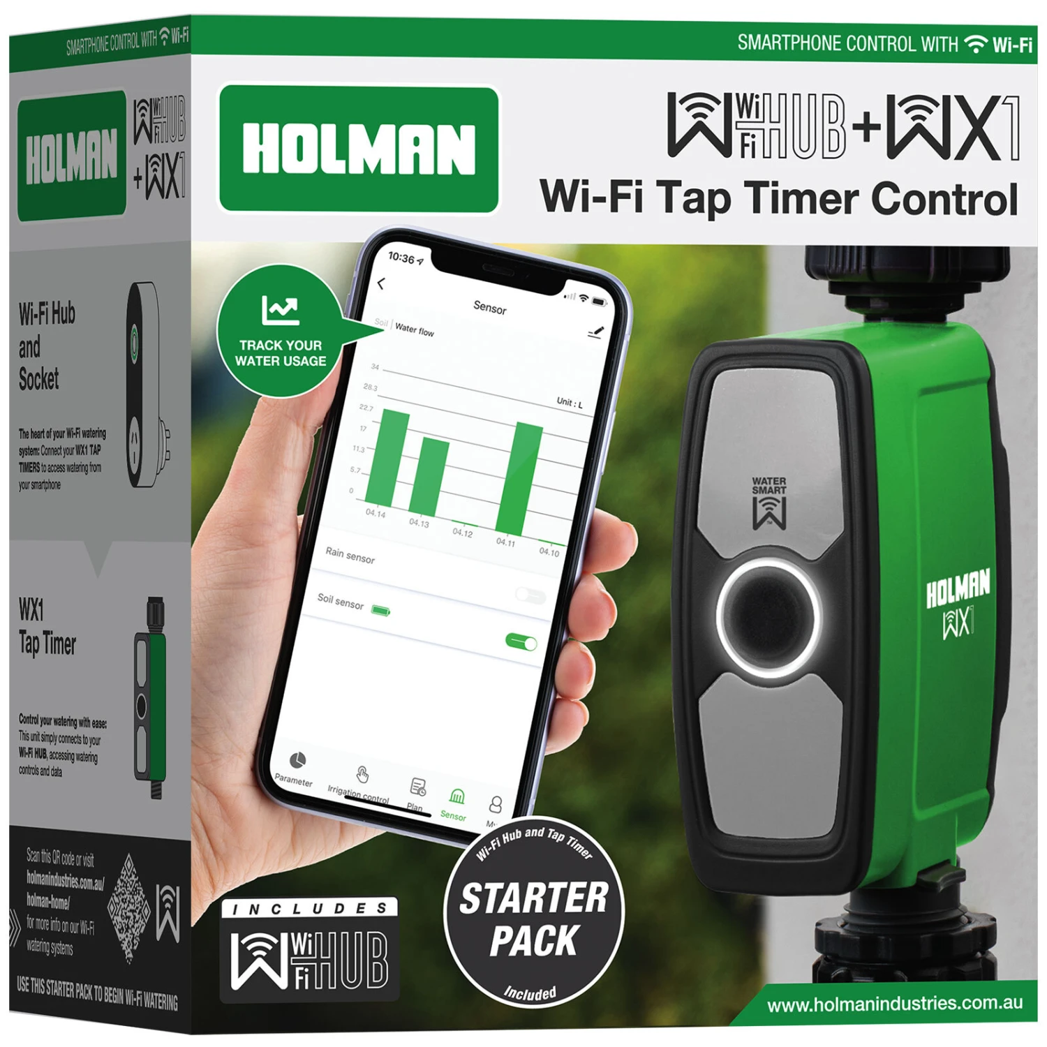 - Integrate Wi-Fi into your watering and take control from anywhere. The Holman WX1 Tap Timer and Wi-Fi Hub is set up in 3 easy steps, so you can get smarter watering, even faster! Control up to 4 x WX1 Tap Timers through a single Wi-Fi Hub, to water your whole garden. The extra power socket allows you to have ON/OFF control from anywhere. All controlled via your smartphone and the Holman Home App