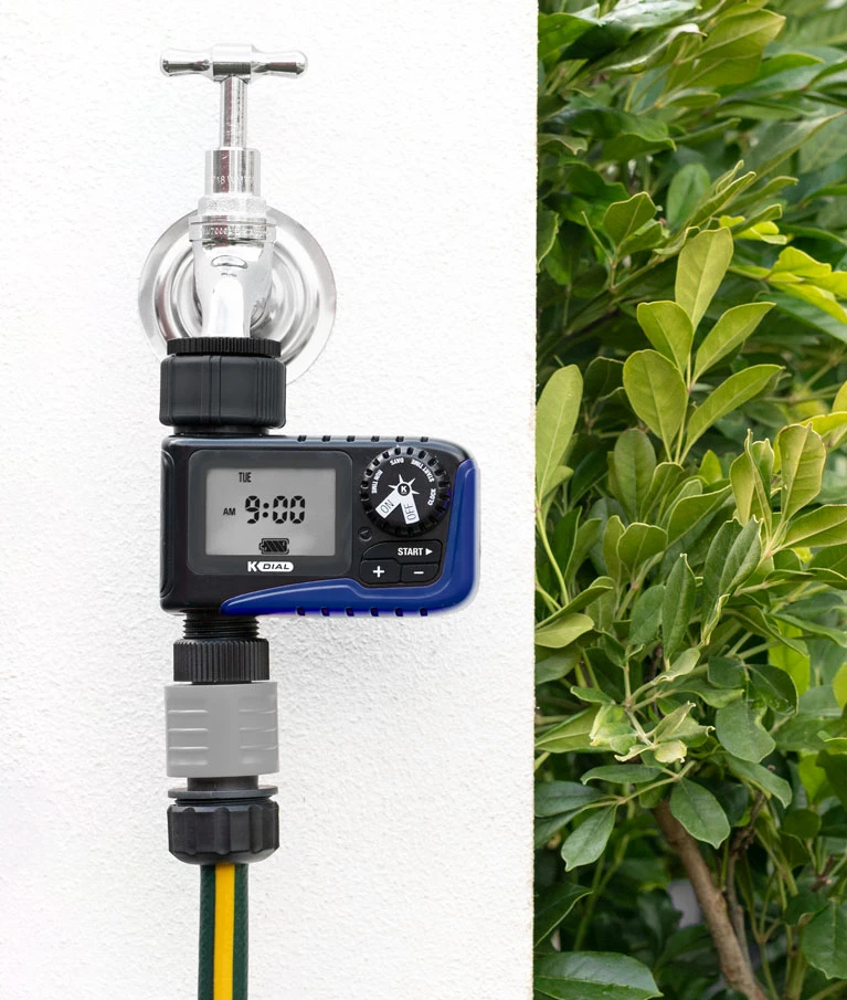 - The K-Rain K Dial Digital Tap Timer is made to be used in residential applications with normal household water pressures. The single outlet models feature a 7-day watering schedule with 4x start times per day suitable for watering lawns, garden beds and micro-irrigation systems