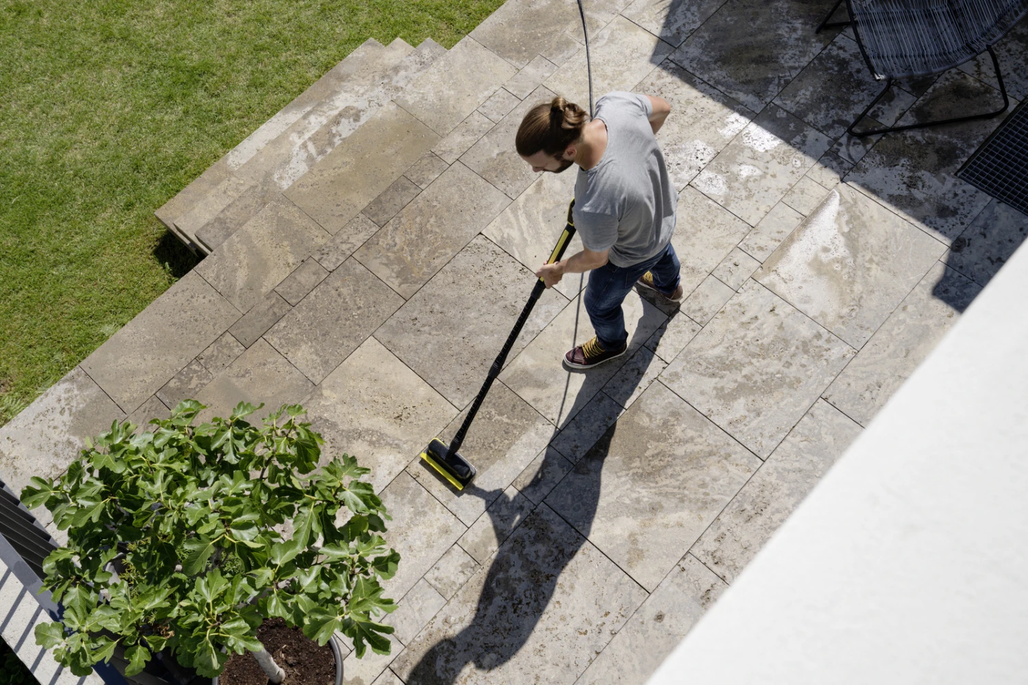 - The PS 30 PLUS power scrubber provides outstanding cleaning results on various surfaces. This is ensured by three high-pressure nozzles, which loosen even stubborn dirt. This makes the PS 30 the ideal aid for reliably cleaning small to medium-sized areas, such as stairs and edges. The brush head can be rotated 360° to clean hard-to-reach areas. All smooth surfaces can be squeegeed with the integrated dirt blade after cleaning. This removes excess dirty water quickly and makes the surfaces ready to use again straight away. This combination of high-pressure jet and manual brush pressure, with the resulting cleaning performance, outperforms all standard scrubbers and can be combined with all Kärcher class K 2 to K 7 pressure washers