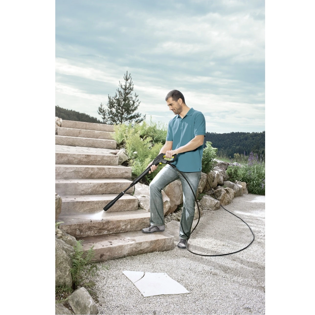 The Vario Power spray lance: from low-pressure detergent jet to high-pressure jet with infinitely adjustable pressure regulation simply by turning the spray lance. Ideal for cleaning smaller areas around the home and garden, such as walls, paths, fences and vehicles. Suitable for all Kärcher pressure washers in classes K 4 to K 5.