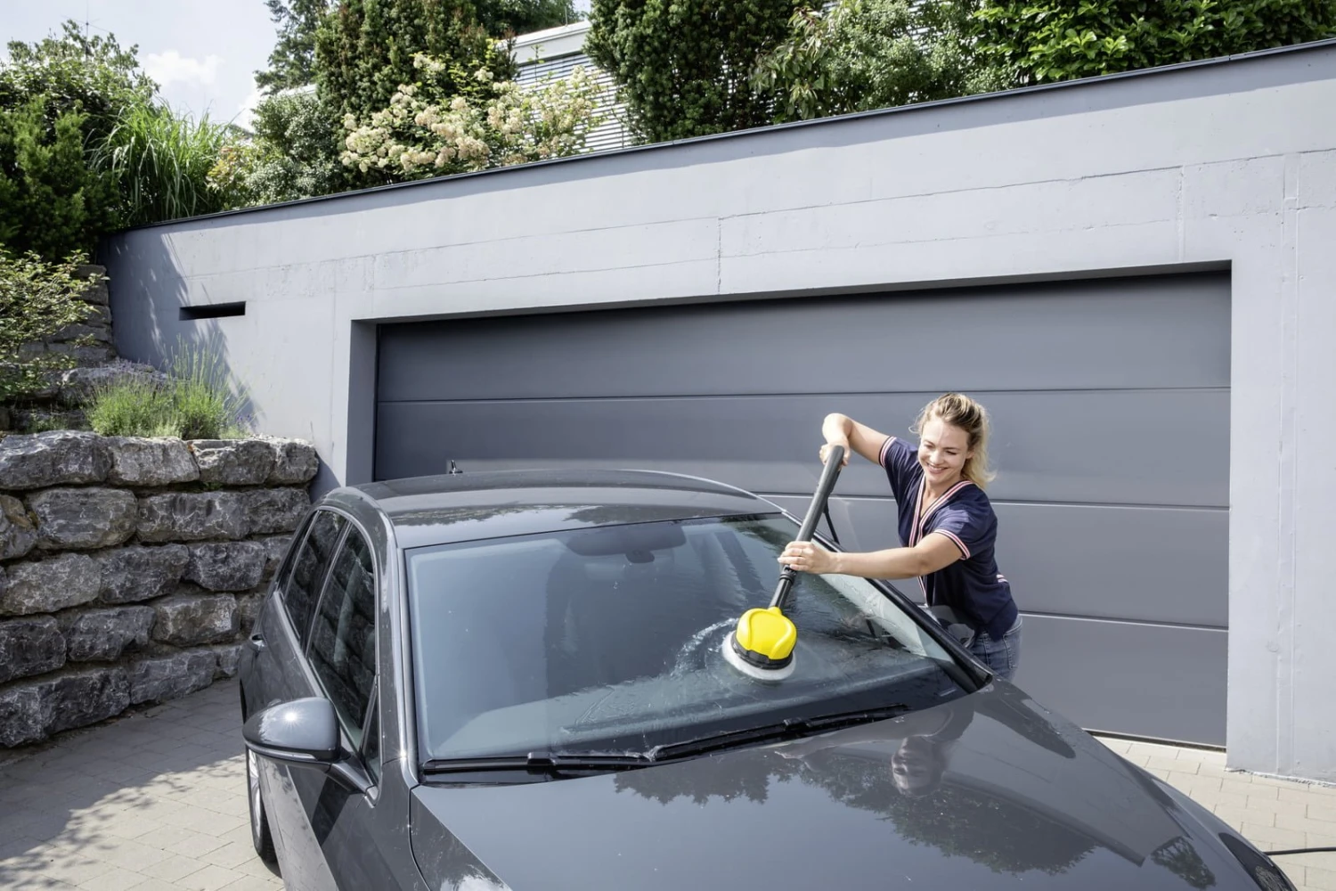 - Thanks to its new gearbox, the rotating wash brush boasts more power than previous models – for effective and thorough cleaning of all smooth surfaces such as paint, glass or plastic. The pressure washer brush can be used in combination with all Kärcher pressure washers in the K 2 to K 7 ranges. Detergent can be applied via the pressure washer if required