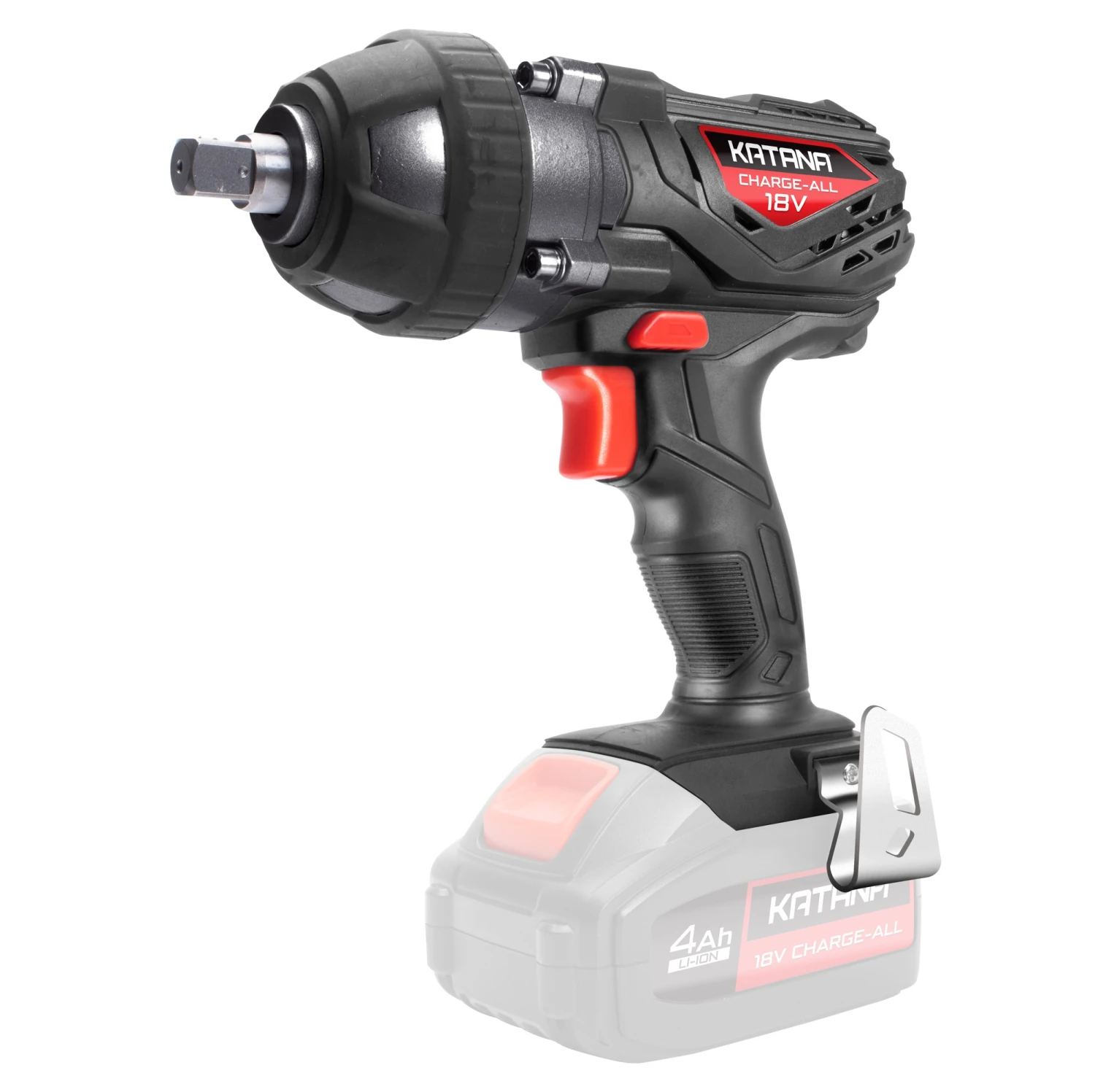 - The Katana 18V Charge-All 1/2” Impact Wrench is your solution for fastening needs around the home, garage or garden when a little extra oomph is required. This impact wrench will accept any standard 1/2” drive impact socket or accessory making it an extremely versatile tool. whether you’re driving coach screws for your new retaining wall, changing the wheels on your car or anything in-between. Featuring a variable speed trigger, anti-slip nose for extra grip in greasy conditions, electric motor brake and a powerful motor delivering 400Nm of max torque and 2700 impacts per minute. The Katana Impact Wrench has more than enough grunt for any DIY task