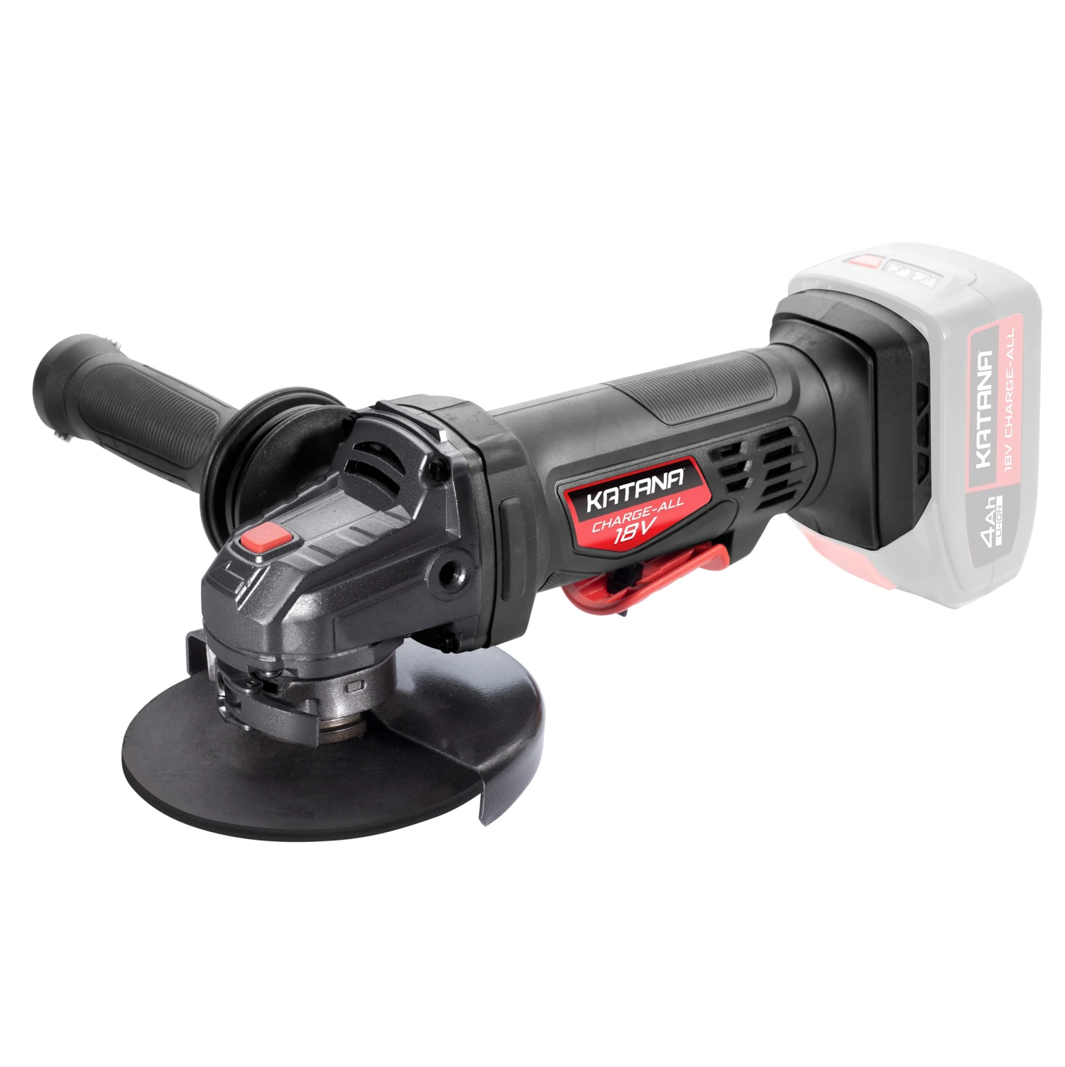 - The KATANA 18V Charge-All 125mm Angle Grinder is your answer for all grinding applications. The tool-free adjustable guard and 2 position side handle means you have endless adjustability and options. A unique slot in the side handle allows the spindle spanner to be stored inside the handle for easy access and storage. The 2-stage paddle switch ensures that the grinder only starts when you need and is safe, user-friendly and comfortable to use