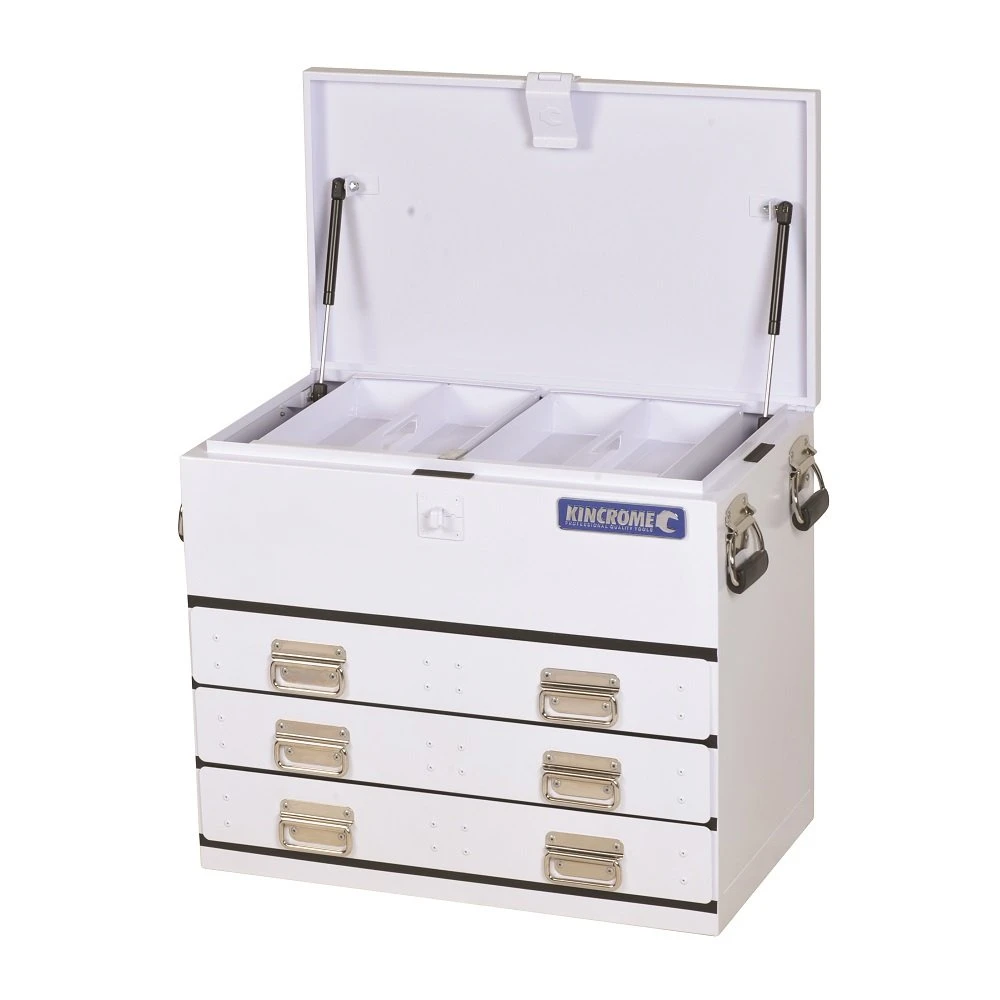 • Chrome plated drawer pulls and 4 big grip side carry handles