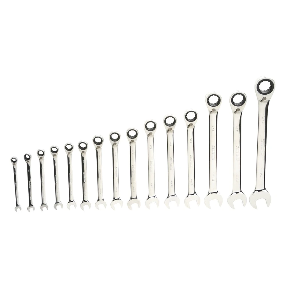 The Kincrome Gear Spanner has all the benefits of standard spanners and more. The strong fine gear ratcheting ring end needs as little as 5° of sweep to move fastener, a standard fixed ring end needs a minimum of 30°, or 6 times the area. Kincrome Gear Spanner ratcheting ring end has a Peripheral Drive™ configuration that virtually eliminates the rounding off of fasteners. The narrow and thin head, combined with fine gear tooth design makes the Kincrome Gear Spanner suitable for working in tight and hard to access areas where a ratchet and socket will not fit. Combined with the ‘Fine Tooth’ technology Kincrome Gear Spanners are the ‘state of the art’ in spanners, and come with a handy plastic storage case.