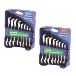 The Kincrome Gear Spanner has all the benefits of standard spanners and more. The strong fine gear ratcheting ring end needs as little as 5° of sweep to move fastener, a standard fixed ring end needs a minimum of 30°, or 6 times the area. Kincrome Gear Spanner ratcheting ring end has a Peripheral Drive™ configuration that virtually eliminates the rounding off of fasteners. The narrow and thin head, combined with fine gear tooth design makes the Kincrome Gear Spanner suitable for working in tight and hard to access areas where a ratchet and socket will not fit. Combined with the ‘Fine Tooth’ technology Kincrome Gear Spanners are the ‘state of the art’ in spanners, and come with a handy plastic storage case.