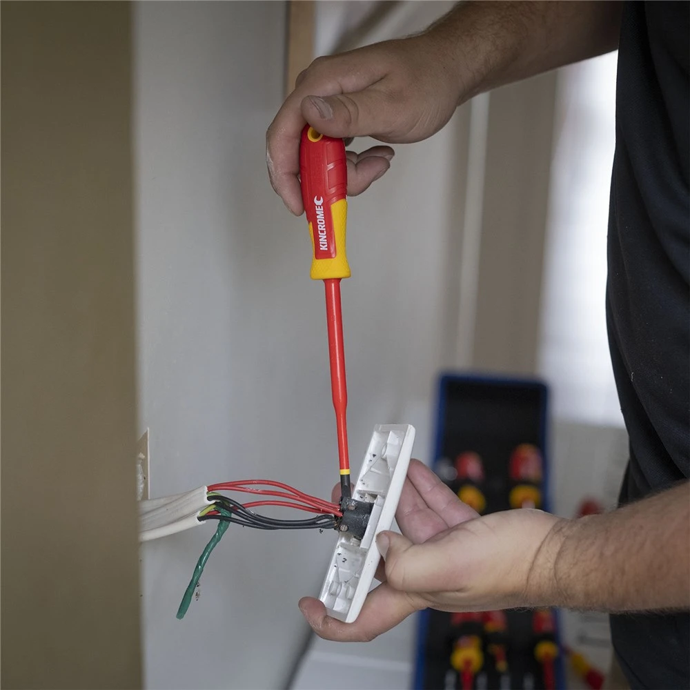 TorqueMaster® VDE Screwdrivers are tested at 10,000v AC and approved for 1,000v AC or 1,500v DC.