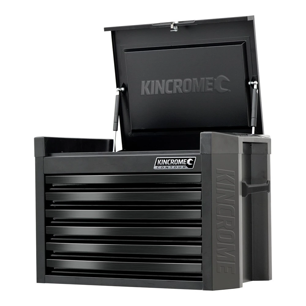 The Leading Edge In Tool Kits & StorageThe CONTOUR® range of Tool Kits, Chests and Trolleys is our premium level range, developed for those looking for trade quality tools and features. CONTOUR® comes loaded with premium features for apprentices and professionals, combined with modern styling, offering you the very best that KINCROME has to offer. Designed in Australia by KINCROME, the CONTOUR® range features a sleek contoured design, available in a variety of gloss colours with a UV protected powder coated finish. CONTOUR® storage comes standard with a range of premium features, including; the chamfered Kincrome embossed side panels, ’Automatic Drawer Retention System (ADRS)’ locking system, heavy duty ‘Big Grip’ side carry handles and a contoured trolley handle, side folding work trays, MDF worktop and four swivel heavy duty polyurethane castors for easy manoeuvrability.CONTOUR® offers a complete range of carts, chests, trolleys and kits to suit every need, from; 26” standard, 28” & 29” extra deep, 42” extra wide and 60” super wide. CONTOUR® is fully modular and customisable, offering the flexibility to build your own premium workshop, the way you want.