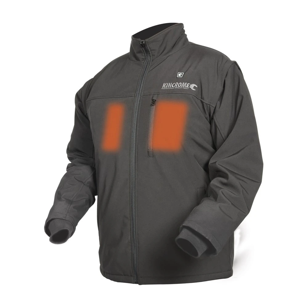 The Kincrome ’Stealth’ Jacket is the perfect additional accessory for cold and rainy days, travelling, going to the footy, car shows or other events when you are looking for a casual style jacket to blend in with the crowd. The smart looking Kincrome ’stealth’ black design is Water and Wind resistant with a nylon / polyester inner lining, features internal heating system with three carbon fibre heating elements and three heat settings ideal for winter and cold days. The heating system features a small 7.4V 4400mAh Li-Ion battery with a USB output that can also recharge your mobile device if necessary, can be recharged in approx. 3.5 hours providing a jacket heating run time of up to 8 hours when fully recharged, perfect for those long mornings, days or nights in the cold. The Kincrome ’stealth’ black jacket features removable sleeves so it also doubles up as a vest fore those not too cold days