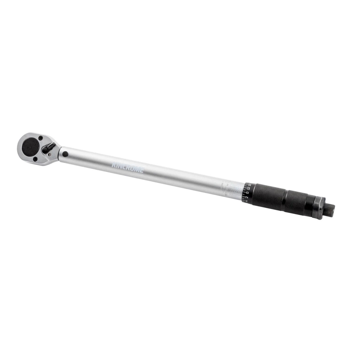 - Manufactured from nickel chrome plated alloy, 1/2″ square drive, with reversible ratchet head. The Nm scale and Ft/lb is engraved on the barrel of the wrench. The micrometer type sleeve allows accurate preset torque levels to be set. When torque is reached the wrench produces an audible click and a release of tension. *This torque wrench is accurate to +4% of the test load as noted on the supplied certificate of calibration and has been manufactured and tested in accordance with equipment in accordance with 150 0789-1:2017. Accuracy outside the stated minimum and maximum test load is not guaranteed