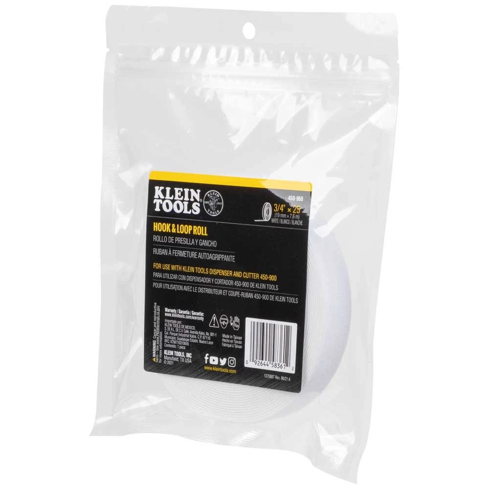 - This Hook & Loop Replacement Roll has strong, yet flexible hook & loop tape, to securely hold cable bundles of any size without damage. Works with Klein’s Hook & Loop Tape Dispenser (Cat. No. 450-900. Tape can be cut to any length. Includes one 12-foot roll of white, 3/4-inch wide tape