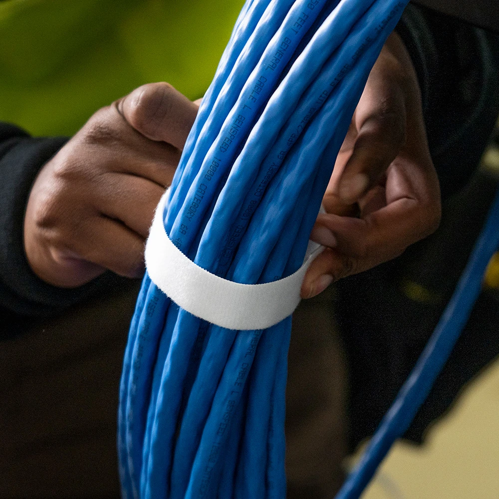 - Strong hook & loop tape material securely holds large bundles of wire and cable, yet is flexible and supple to avoid causing adverse damage to conductors or jackets