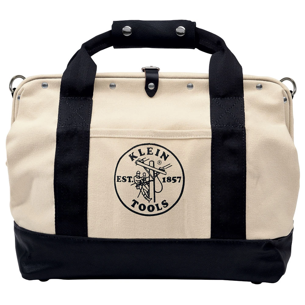 - This canvas tool bag features 10 interior pockets and 1 external pocket for organisation. The leather bottom and sides provide extra protection from the elements. No.8 natural canvas is heavy-duty for added durability. At 18” (457 mm) wide and 14” (356 mm) high, this is the perfect on-the-job bag
