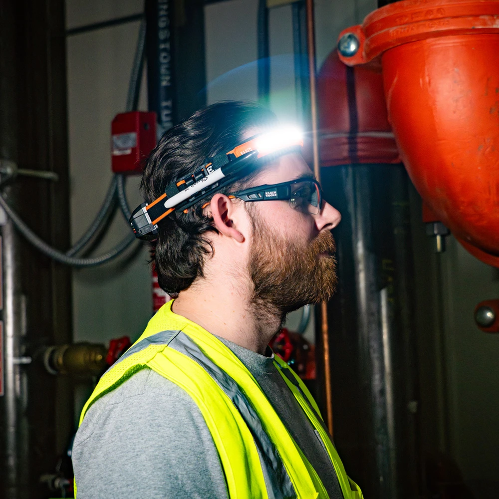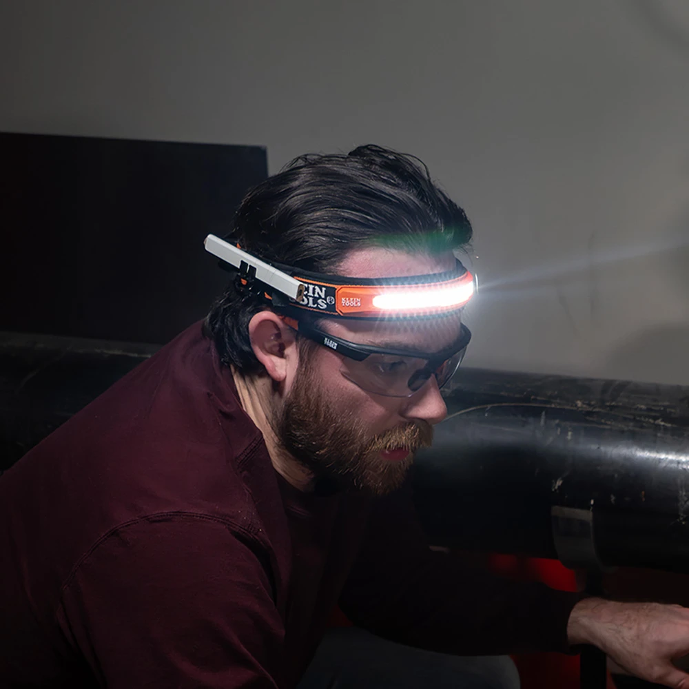 - Klein Tools Widebeam Headlamp with strap and rechargeable battery can be worn on any Hard Hat, Safety Helmet, or directly on the head. Headlamp provides up to 575 lumens of bright light and runs for up to 12 hours. This headlamp also features All-On or direct Focus modes with multiple lumen settings for a variety of applications and jobsite needs