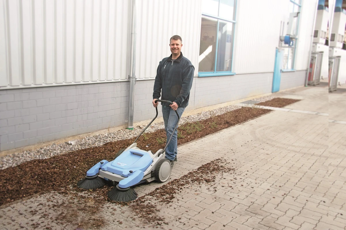 - Features – Continuously adjustable push handle for comfortable & speedy sweeping action without putting necessary strain on the back, Folding handle for space saving storage, cleaning system avoids direct contact with dirt, Simple handling & emptying of waster bin, Foldable & continuously height adjustable side brushed, large wheels fitted with natural rubber tyres for optimum transmission of force, combines hard/soft stellar-shaped bristles