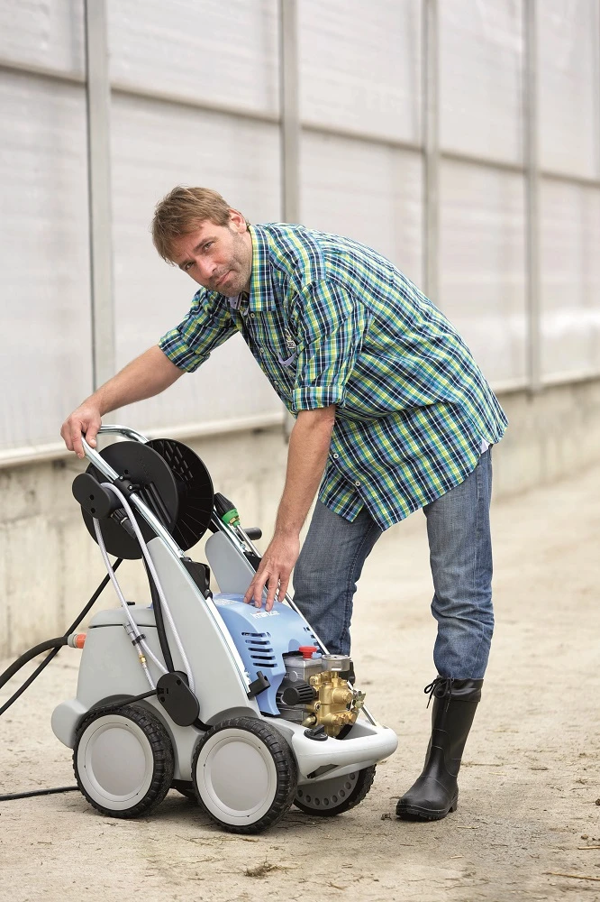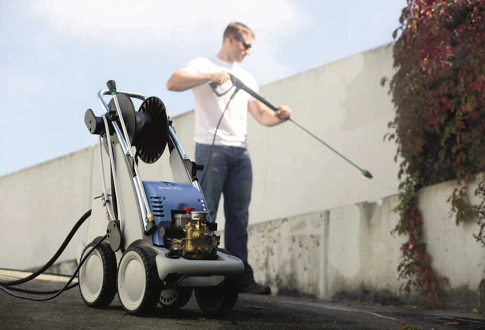 - The Kränzle quadro series combines all advantages from the Profi series and, due to its double axle chassis and its 4 wheels, sets a new benchmark with regard to stability while offering highest conformity during operations that require frequent change of position. In such cases, too, large overdimensioned gears and oil housings are used to noticeably increase the service life during rough industrial operation. And, of course, the integrated hose drum with foldable crank and up to 20 m high-pressure hose come as a standard with many of the quadro models as well as the sturdy shock absorbing buffers and the integrated water tank