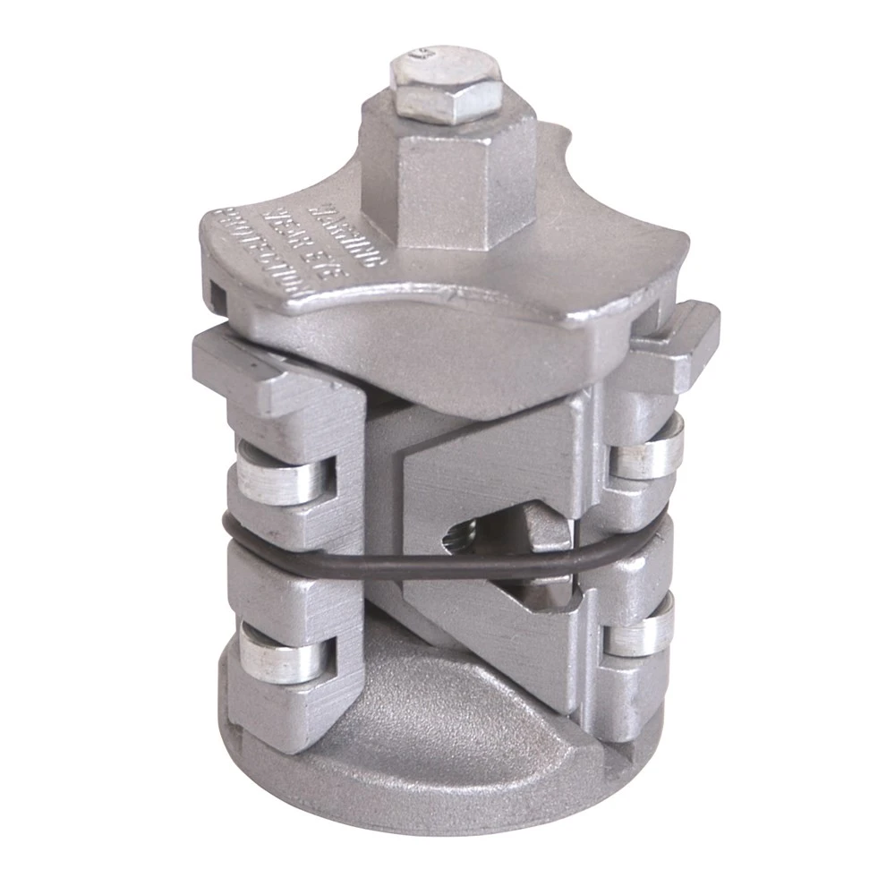 Rollers assure easy turning in cylinder. Exclusive stabilizer spring allows operator to take selective cut to minimize chatter. Spring-loaded carbide cutter follows contour of cylinder. Complete ridge removed in just a few easy turns. Offset jaw guides assure rigidity throughout the range.