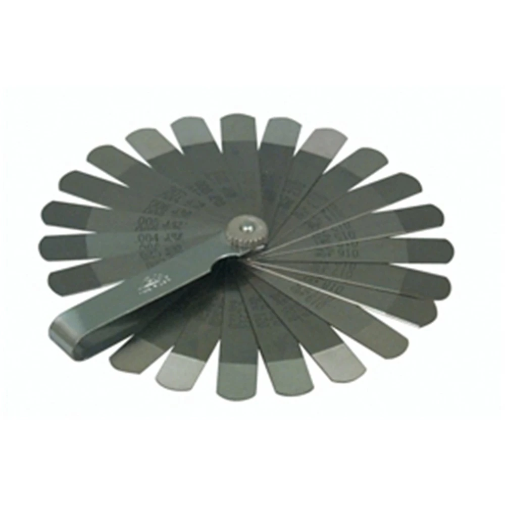 Precision stepped blades have a .002″ step for accurate settings. Blades from .004″ to .027″ (.102 – .686mm) are approximately 1/2″ wide by 3 1/4″ long.