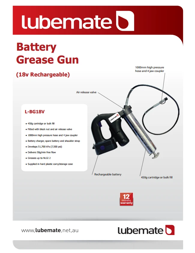 - A heavy duty, continuous flow, battery operated grease gun