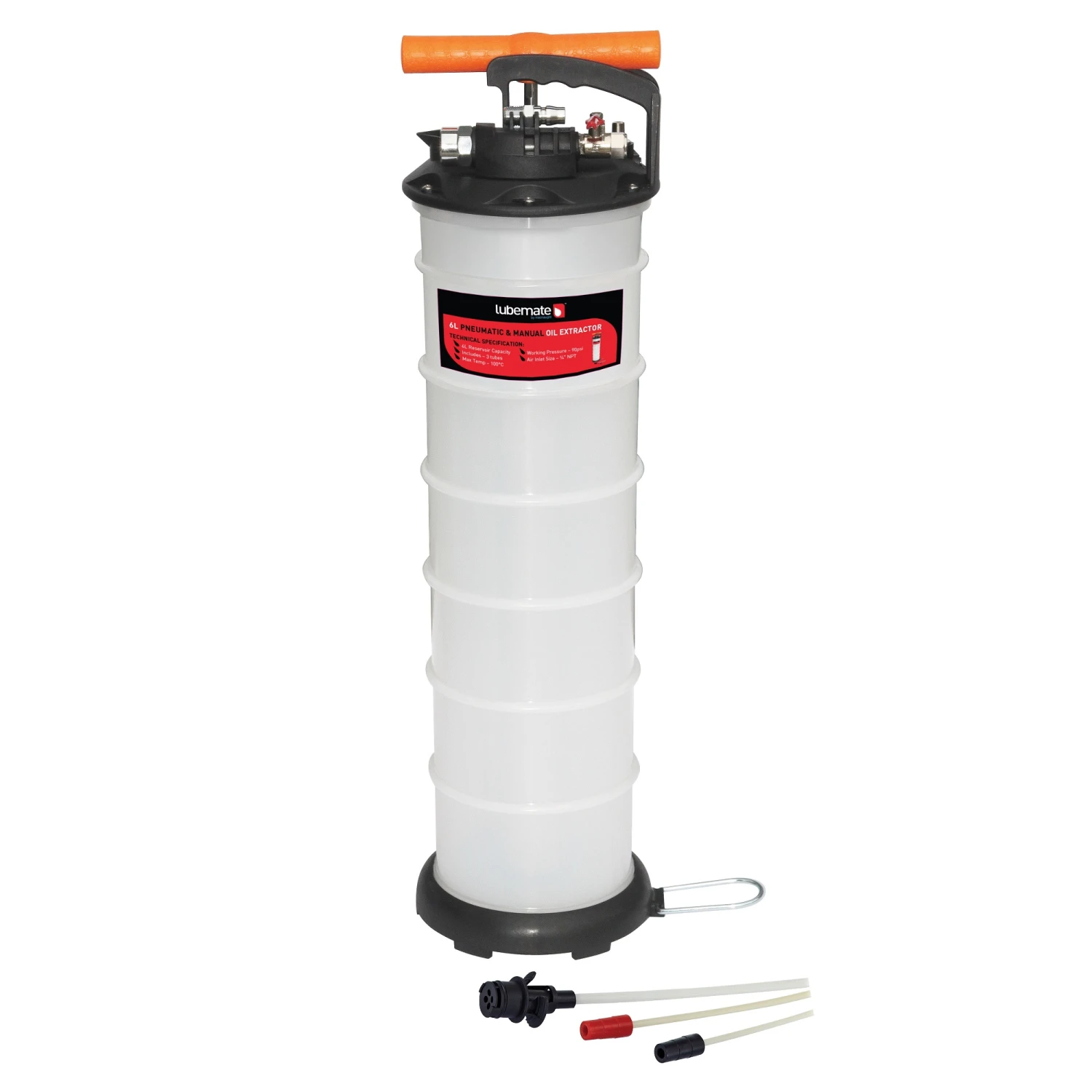 - The 6L Pneumatic and Manual Oil Extractor is a 2 in 1 system which can be used to extract oil either pneumatically with the use of an air compressor or through manual operation by pumping the handle. The Package includes 3 different suction probe to extract oil