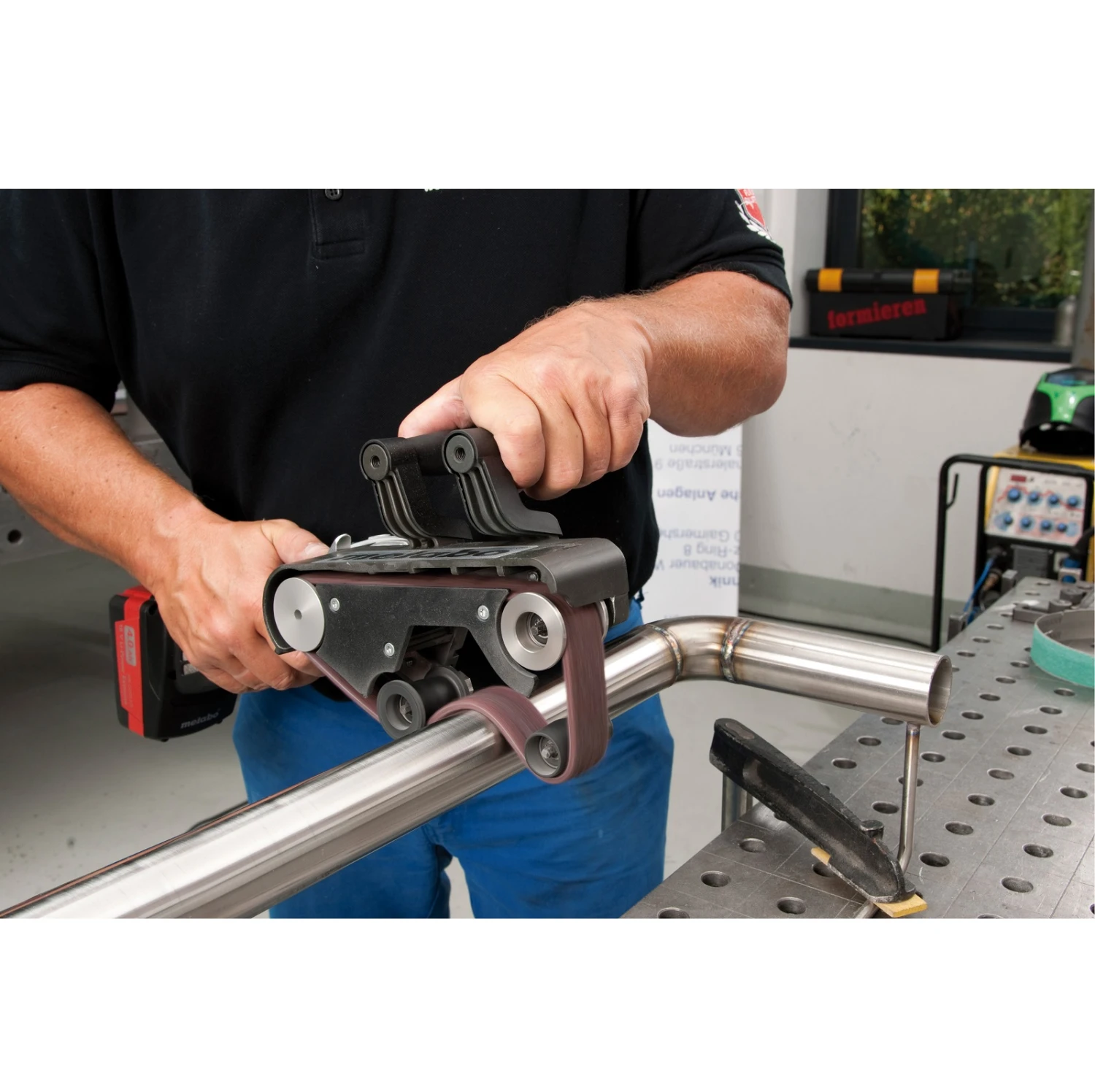 - Compact cordless tube belt sander for quick, flexible processing of stainless steel pipes