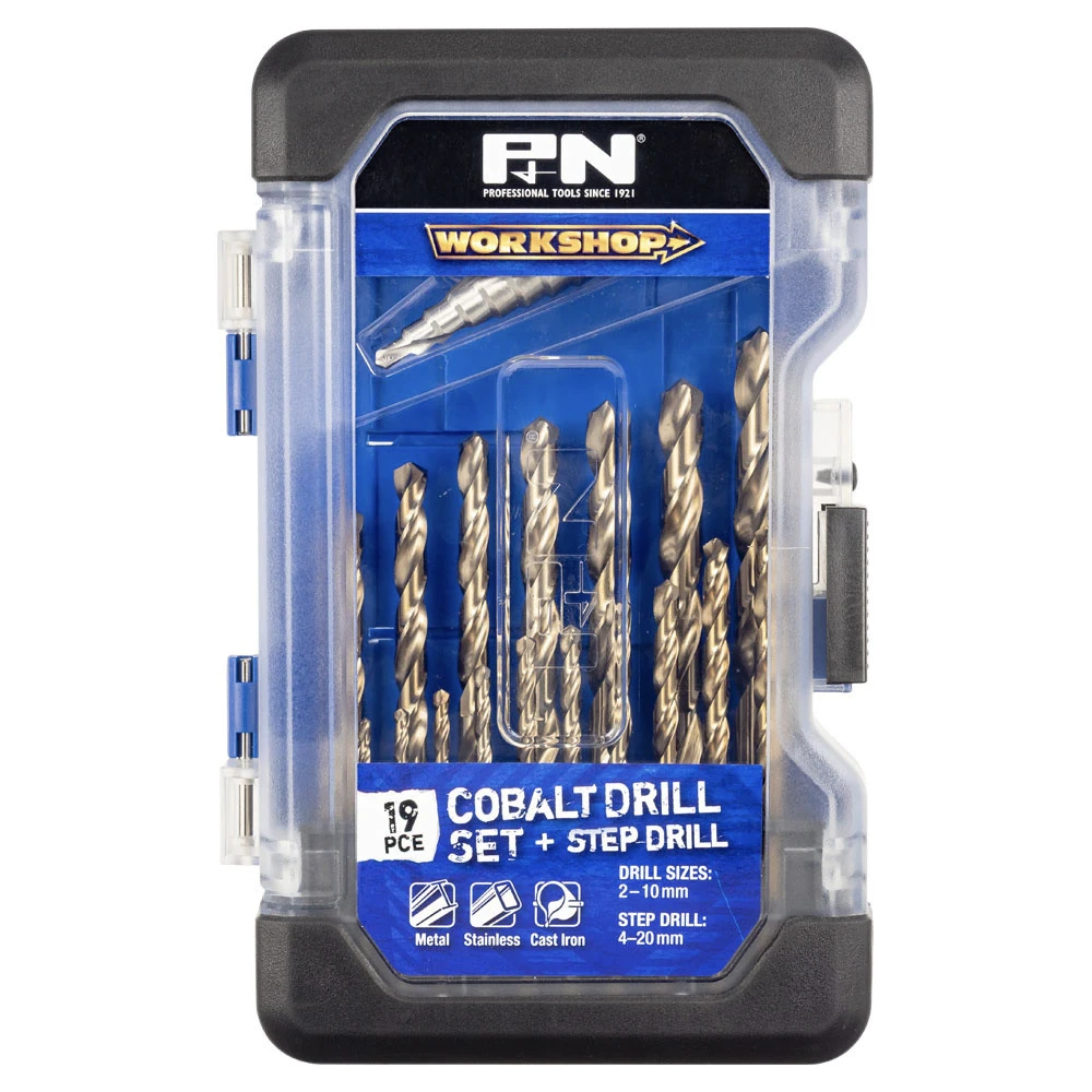 - Cobalt Drills: 2, 2.5, 3, 3.3, 3.5, 4, 4.2, 4.5, 5, 5.5, 6, 6.5, 6.8, 7, 8, 8.5, 9, 10mm