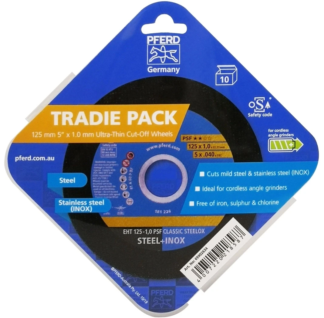 - The PFERD ultra-thin wheels offer “Xtreme cutting performance”. This wheel sets the benchmark in the Australian market for performance. Perfect for cutting INOX stainless steel and mild steel. If you thought there is little difference between cut-off wheels and brands then think again. You may be using a cut-off wheel that’s cheap to buy, only to find it’s inferior and costing you more when compared to PFERD