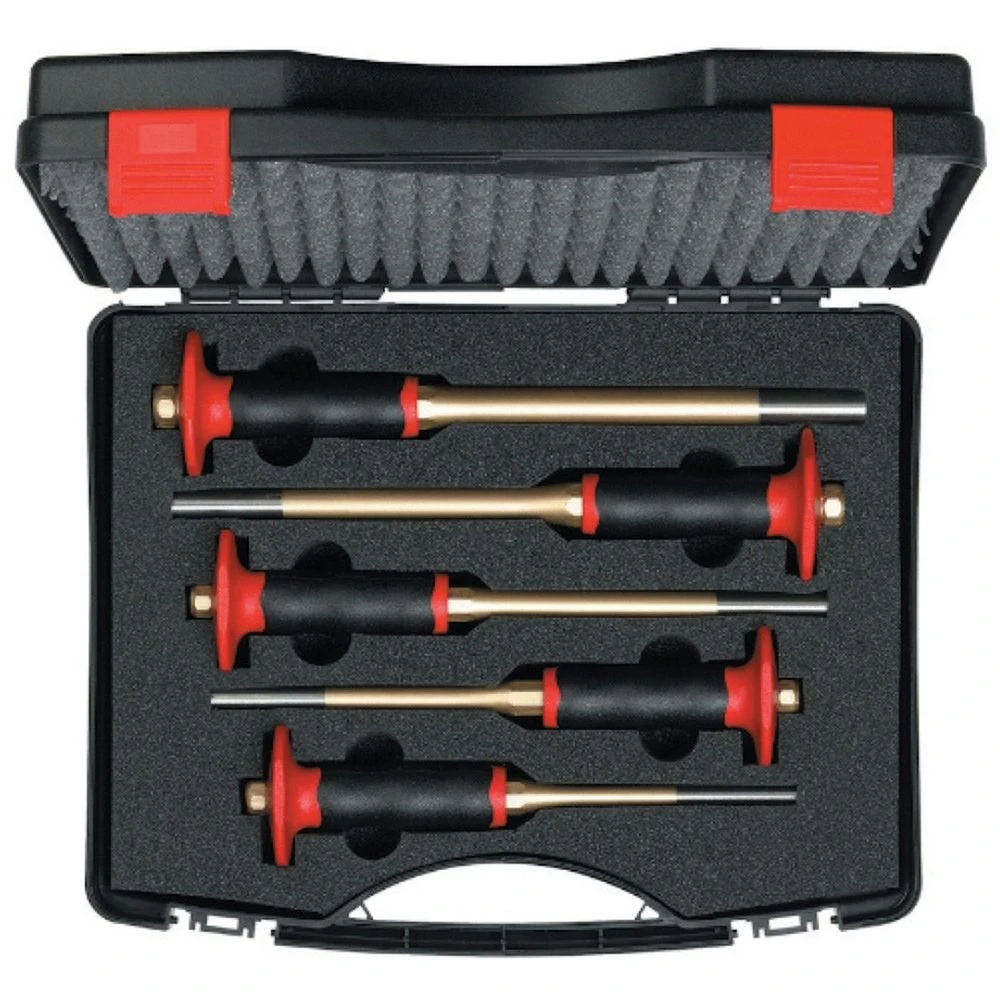 - Set of five parallel pin punches XXL in foam tray with quality case