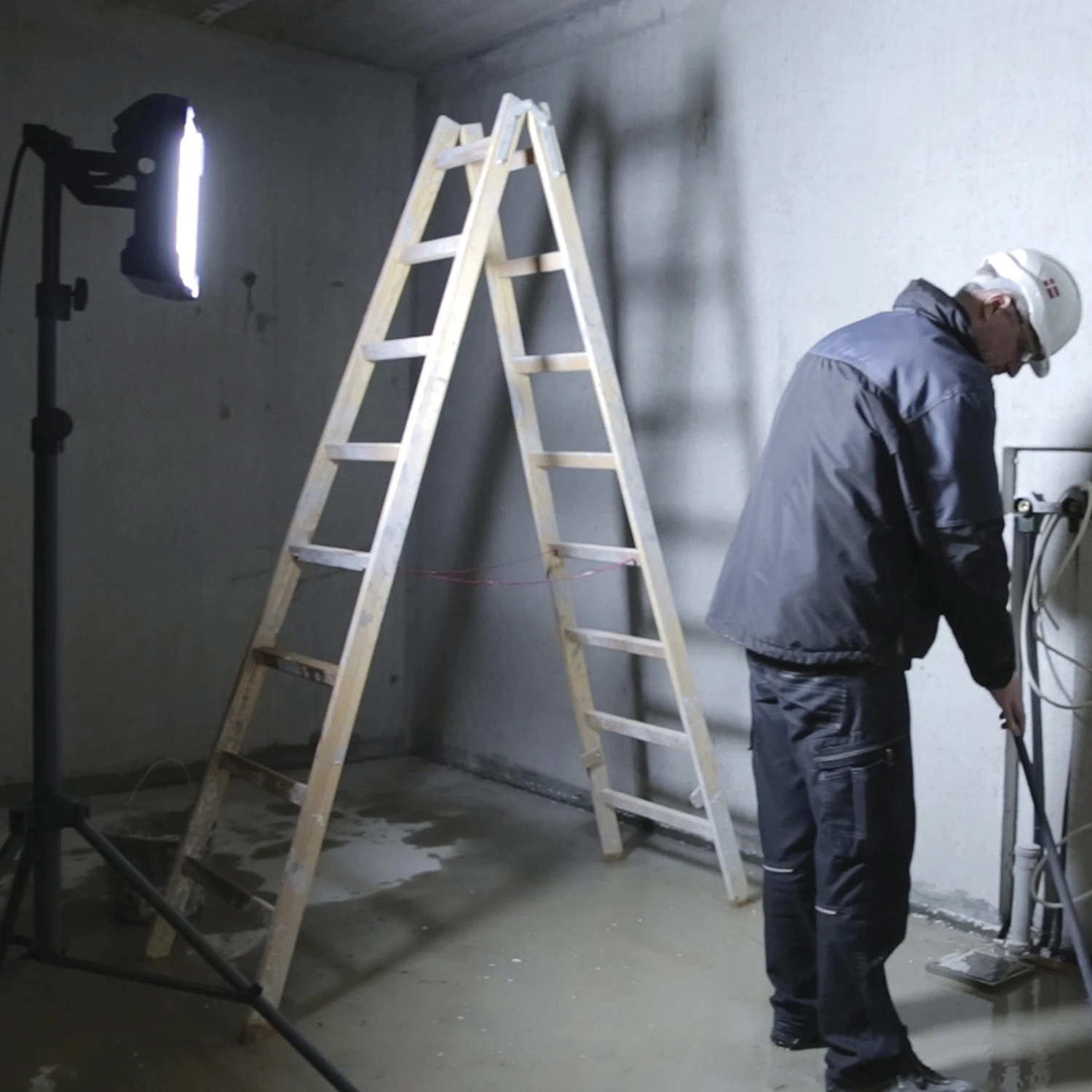 - The floodlight comes with an integrated carrying handle and a stand for direct mounting of the lamp on the SCANGRIP TRIPOD