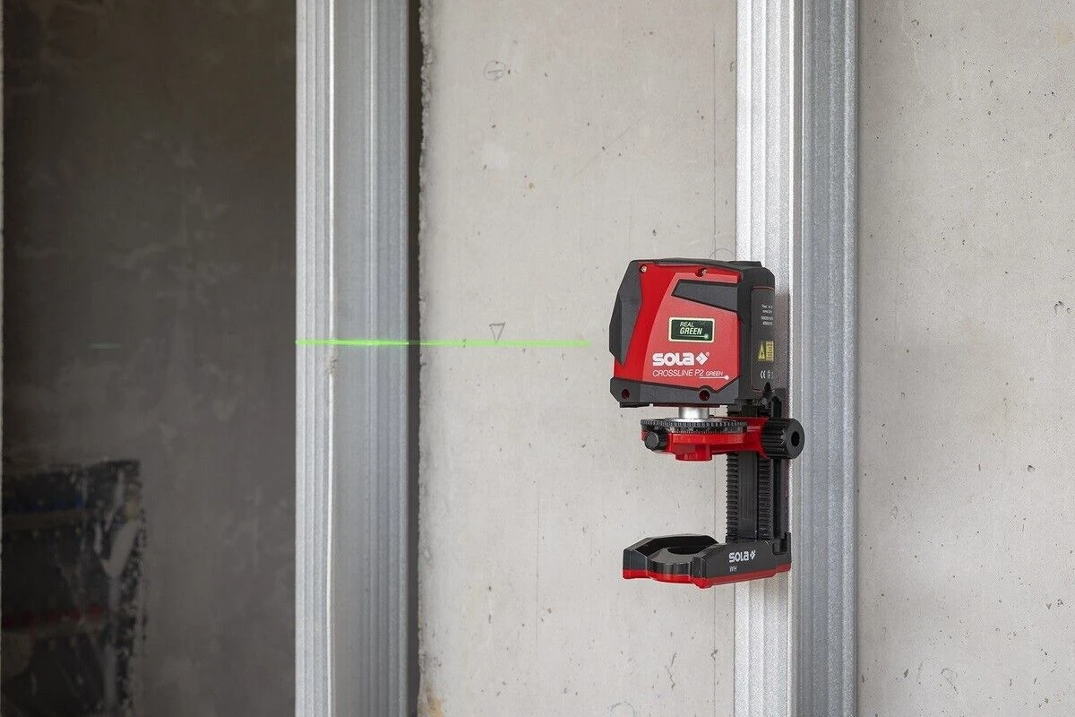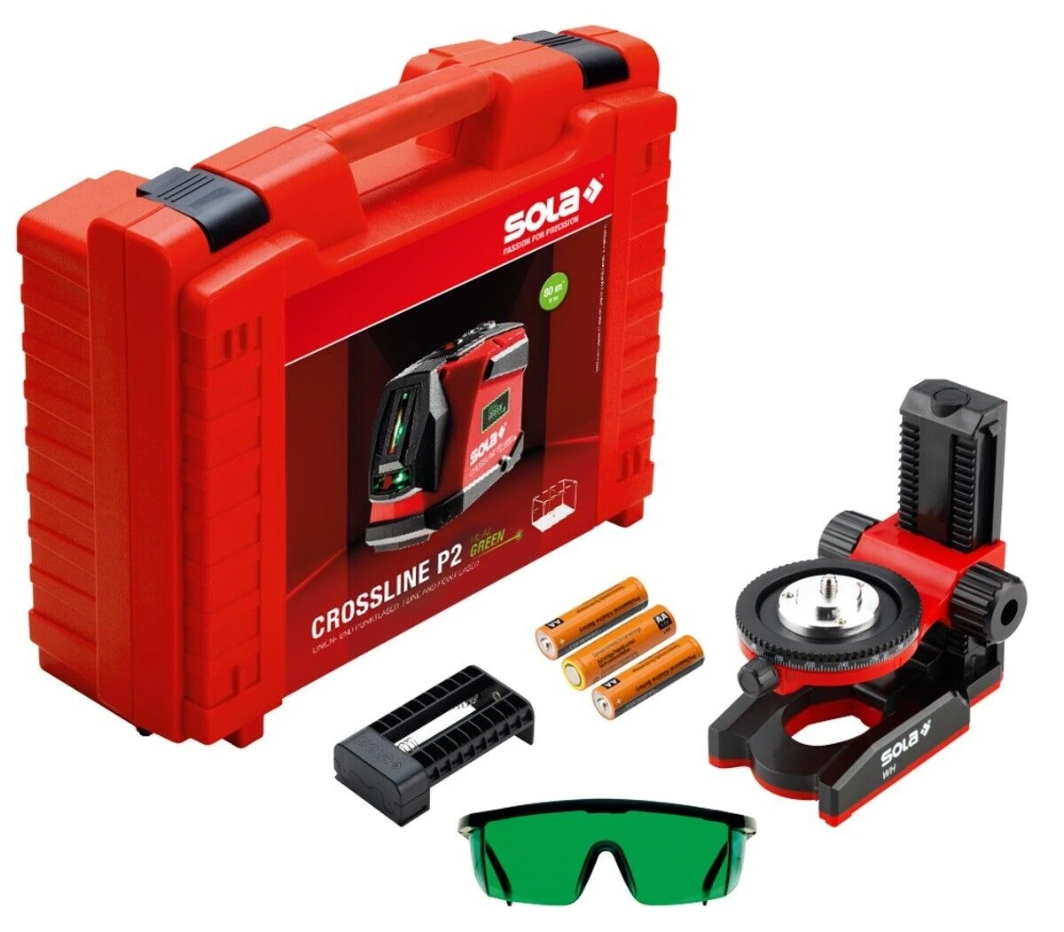 - The Crossline P2 Green is a self-levelling line and point laser that is suitable for professional tradespeople and DIY enthusiasts alike. This compact device features a horizontal and a vertical REAL GREEN laser line, two plumb points. And, thanks to additional features like the tilt function, the laser can be used for a wide range of levelling and transfer tasks. The user-friendly single-head operation enables users to easily switch between the individual functions