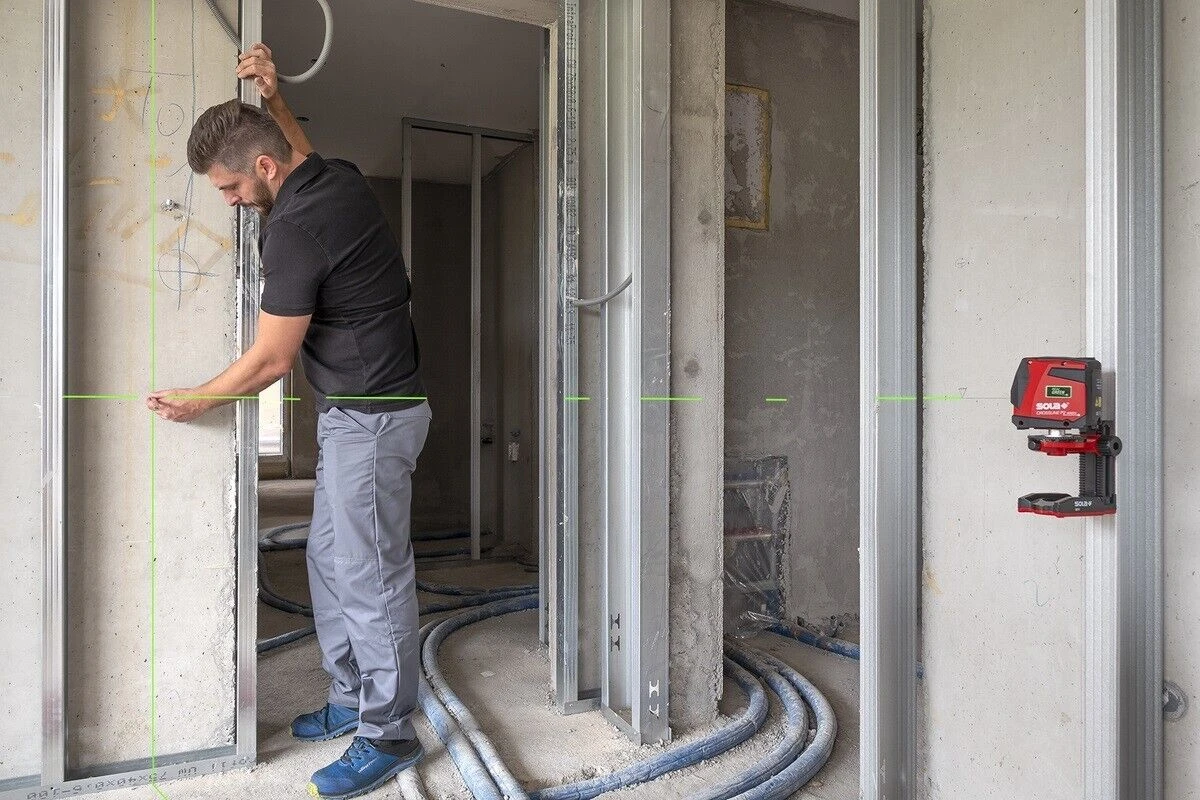 - Horizontal and vertical REAL GREEN laser line for optimal visibility up to 25 m, or up to 80 m with a hand-held receiver