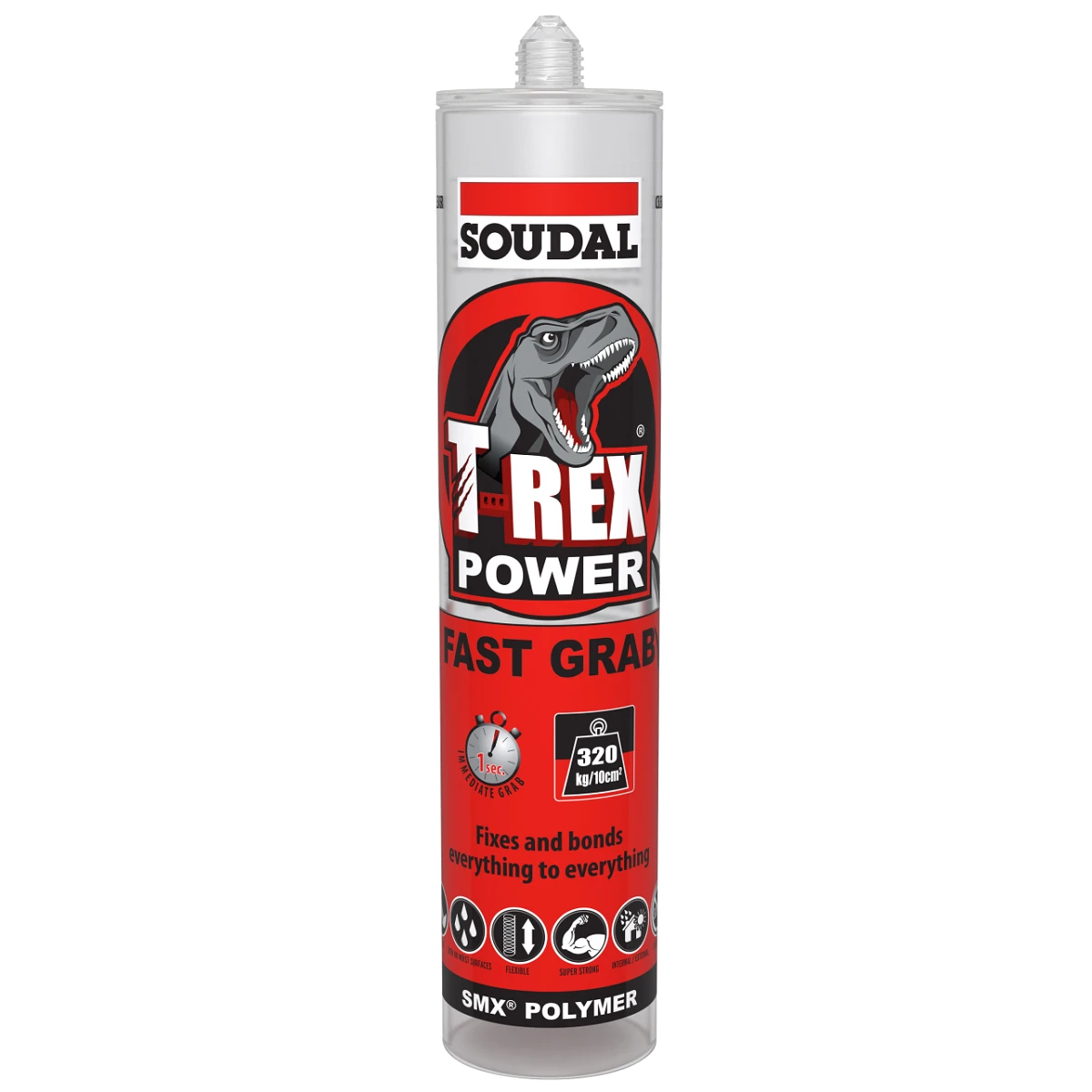 - T-Rex Power Fast Grab Clear is a high quality, neutral, elastic 1-component adhesive based on SMX® Polymer Technology with a very high initial tack