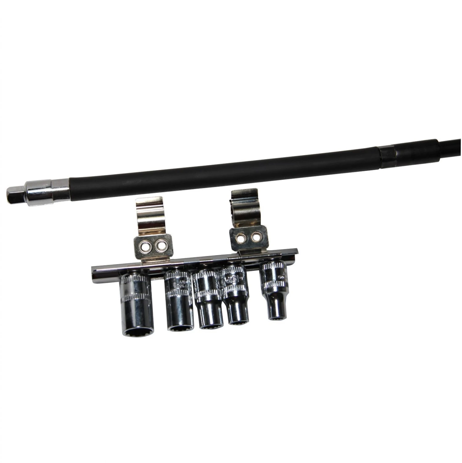 - 1/4″ Drive 12 Point Sockets on Clip-On Socket Rail: 5, 6, 7, 8 & 10mm