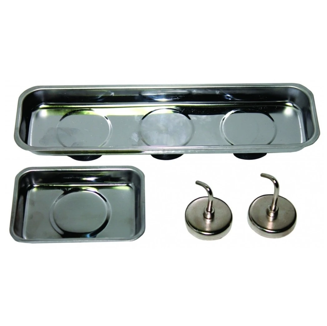 - Magnetic Based Stainless Steel Tray Holds itself and Contents in any Position Avoiding loss of Parts