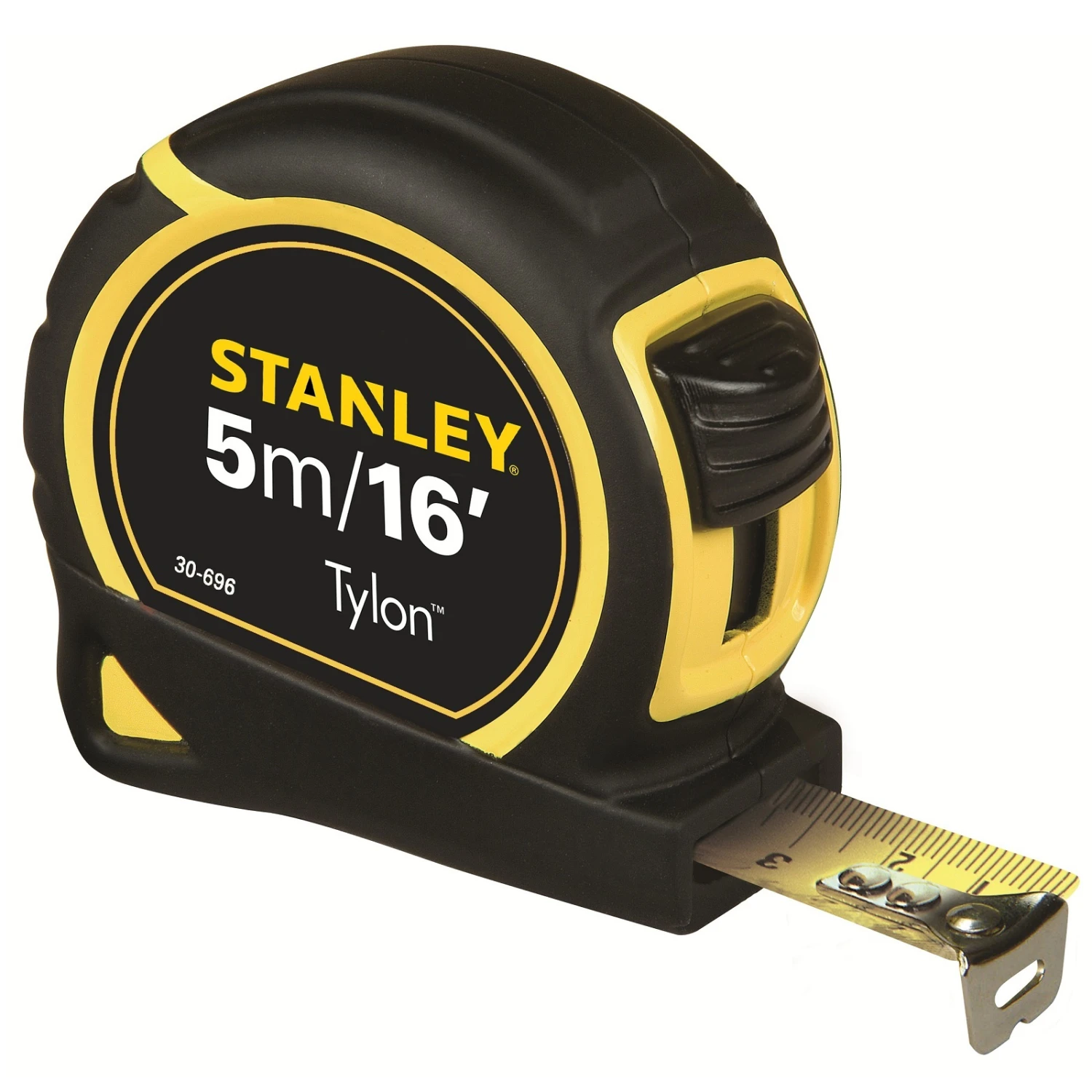- Stanley 0-30-696 Tapes 5mtr/16ft x 19mm industrial quality tape measures made with a corrosion resistant long life nylon blade and supplied in bi-material case for improved safe gripping. These Stanley tapes have a positive blade lock mechanism for accurate measurements plus handy belt clip. The built-in 3 rivet hook is 40% stronger than a standard 2 rivet hook so reducing the risk of breakage plus the tru zero hook gives constant accurate internal and external measurements. These 0-30-696 Stanley tapes are class II industrial quality 5mtr tape measures