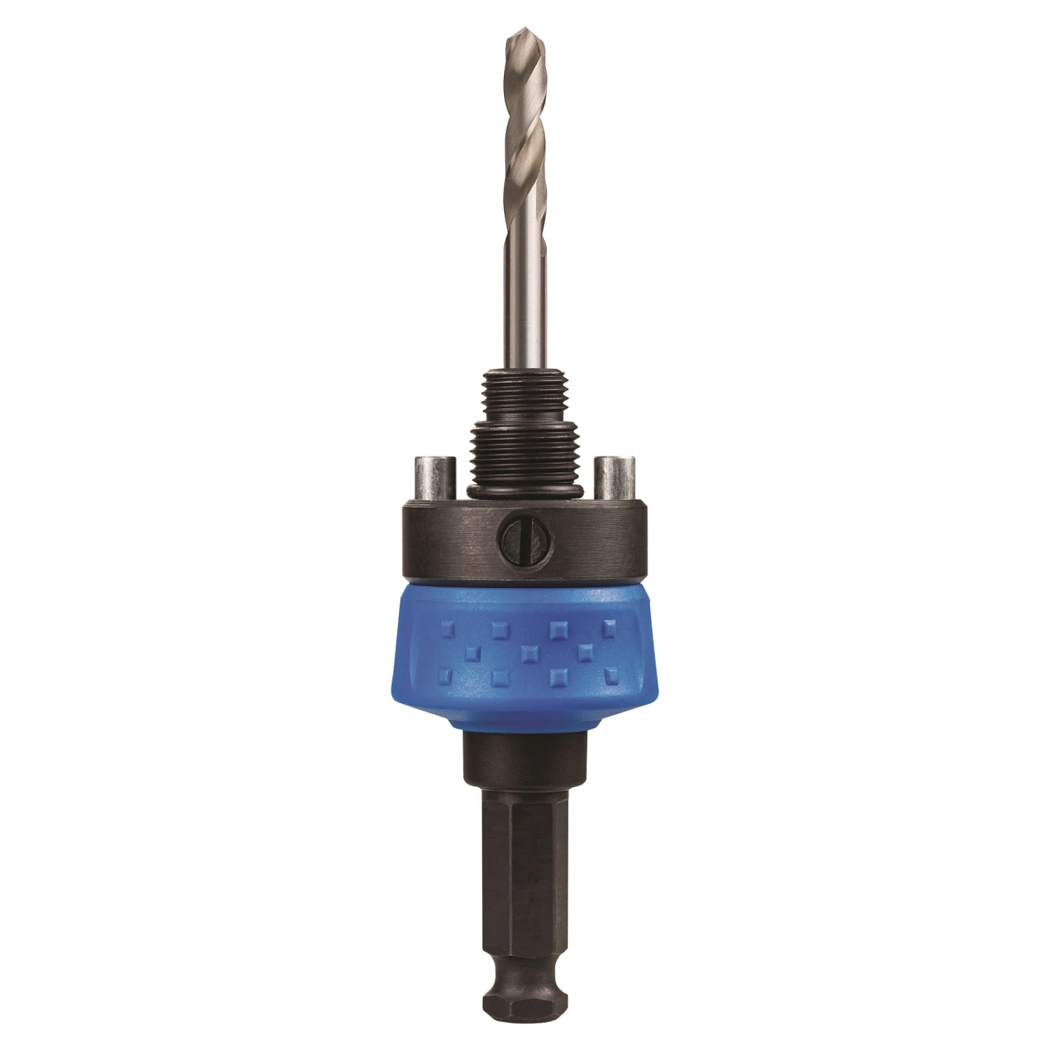 - Solid connection fully engages into the holesaw quickly with one sliding